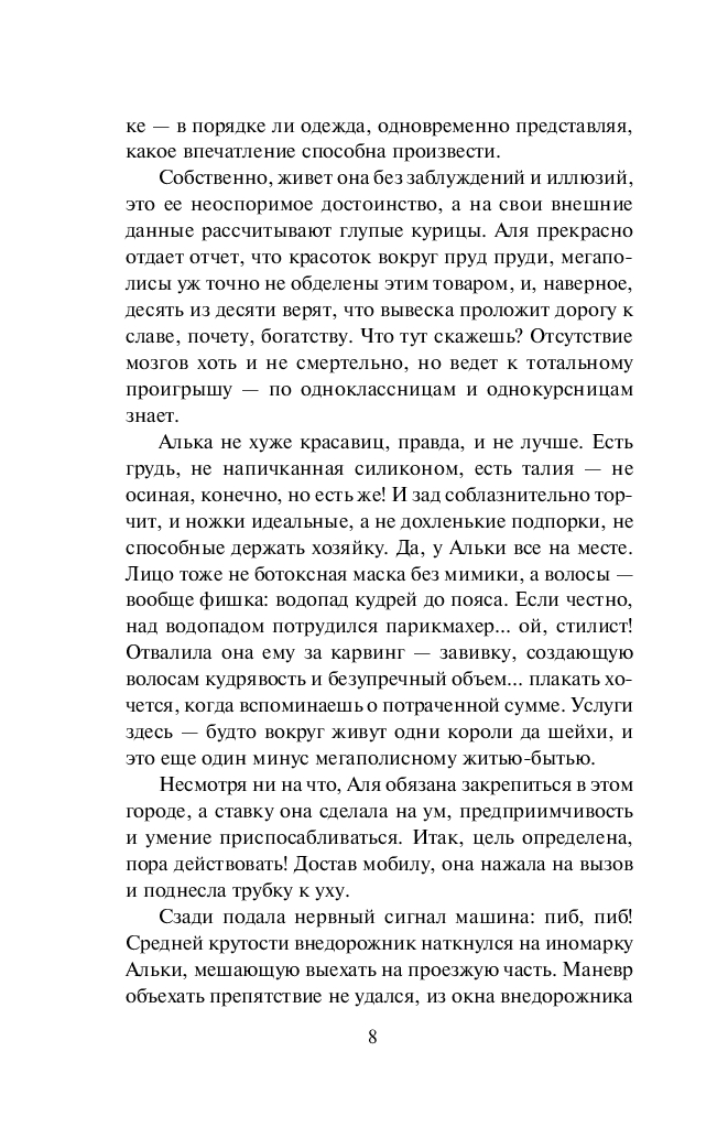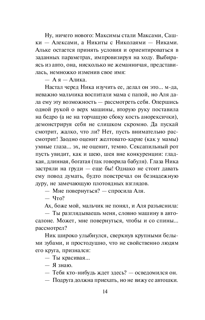 Да, она ищет богатого мужчину (возраст не имеет значения) и находит красавца Ника, вешает ему лапшу на уши, а он клюет. И попадает Аля с малознакомым парнем в чужой дом, а там происходит… убийство на глазах девушки. Она убегает с Ником от убийцы, но в каком виде… без одежды – так получилось, слава богу, на автомобиле. Ник приводит ее к другу Пете, а тот предлагает поехать в дом, где убито три человека сразу.