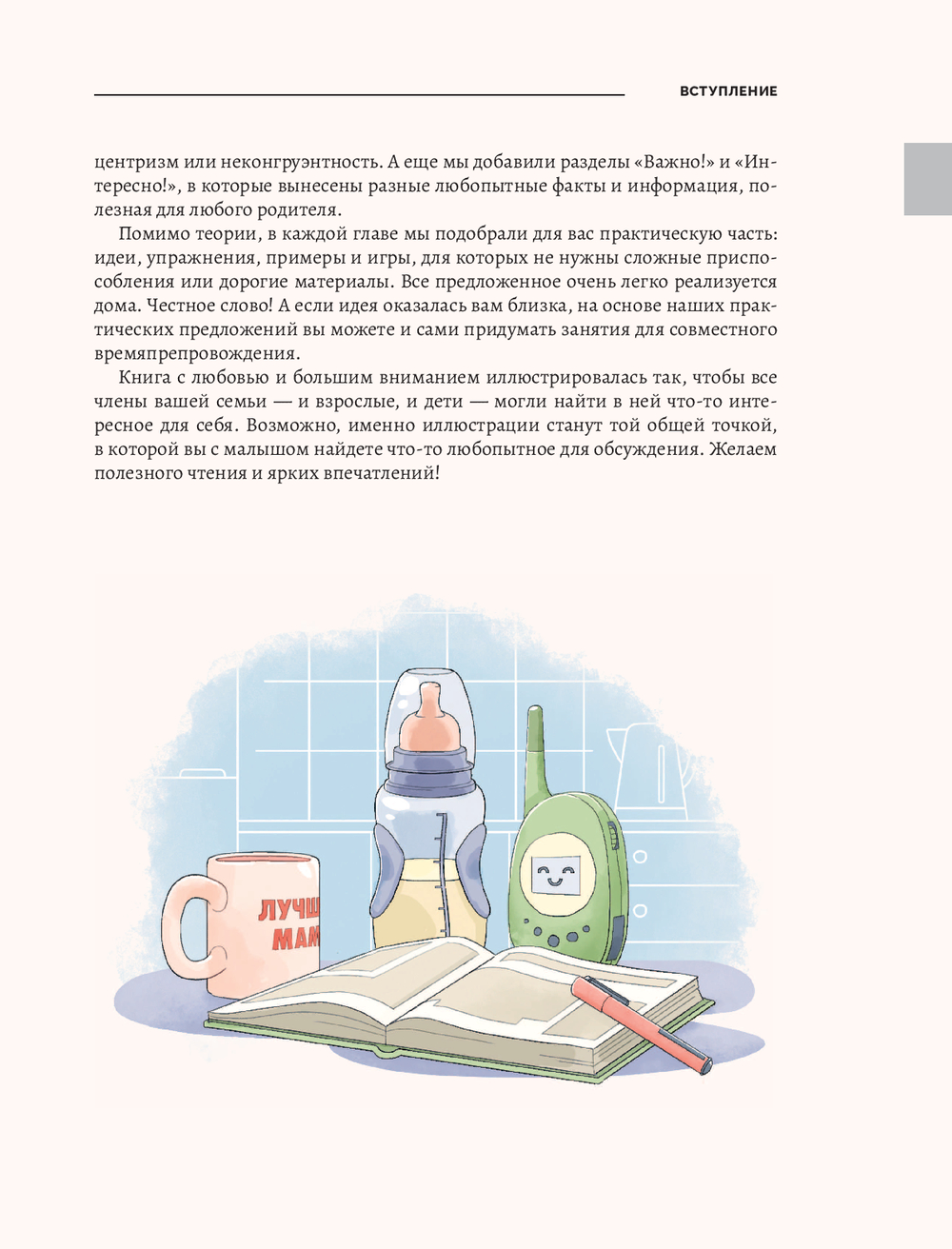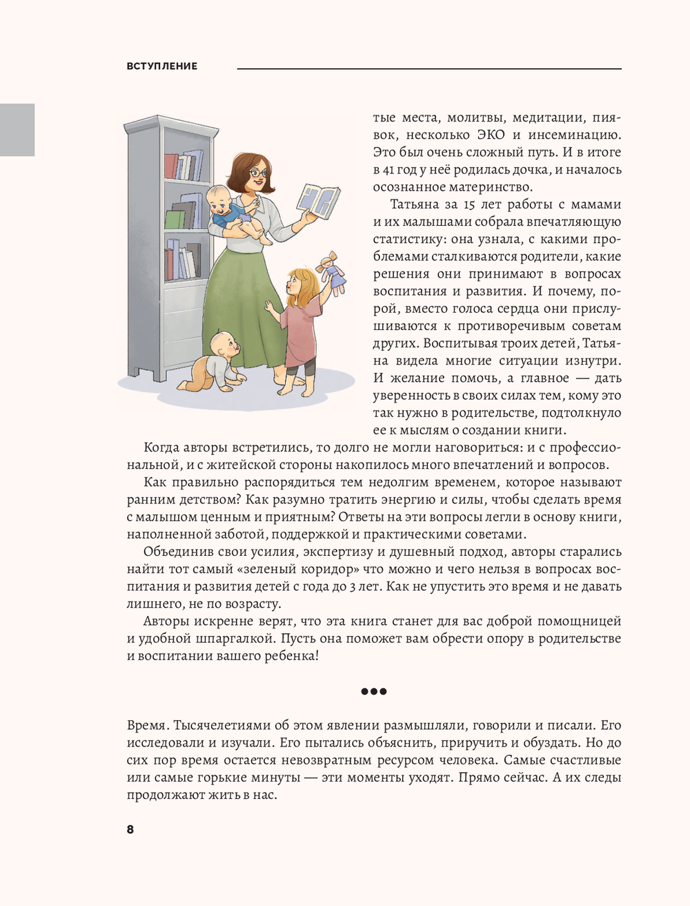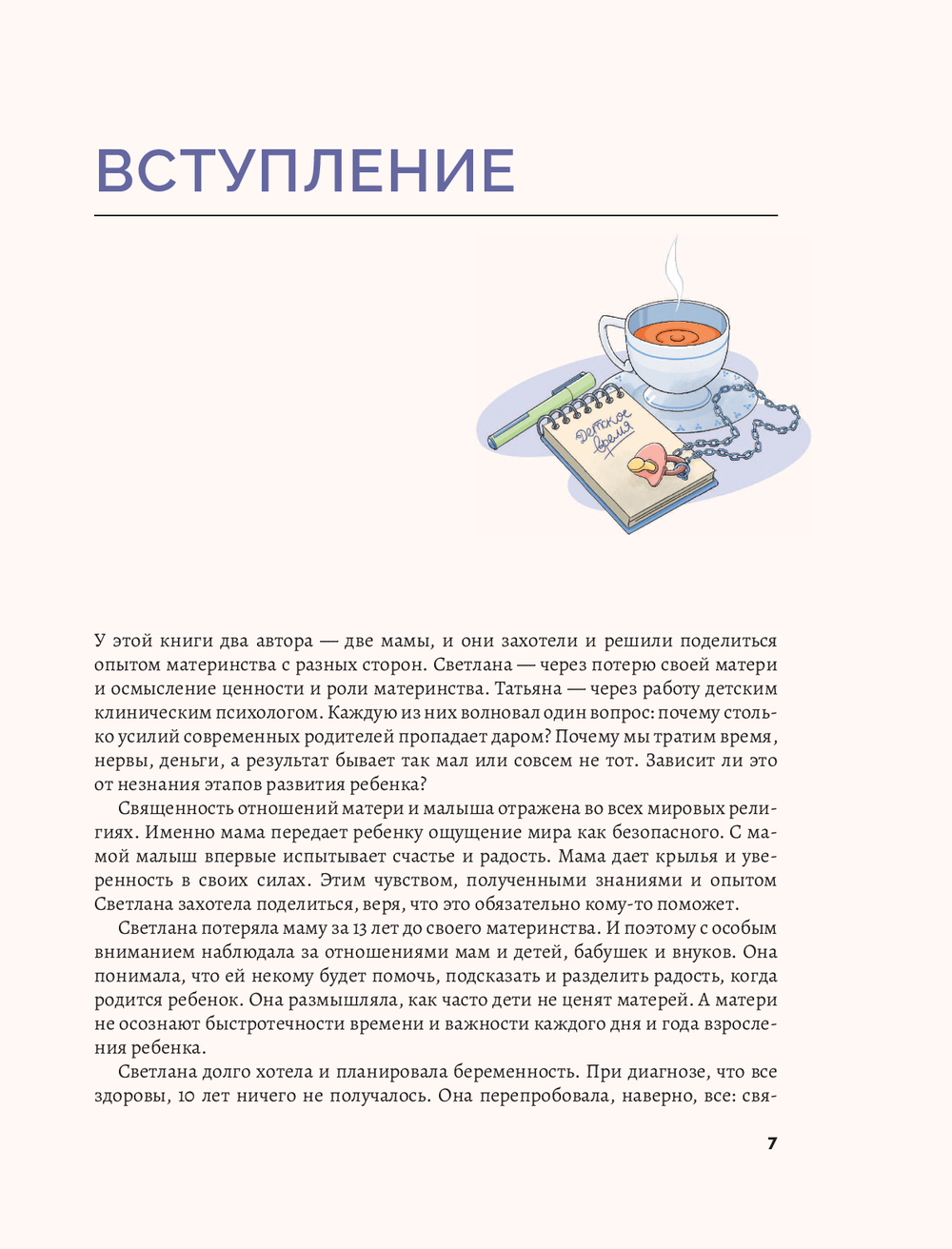 Книга написана и отрисована живыми людьми, без какой-либо помощи искусственного интеллекта. Выверенные иллюстрации являются ее особенностью. Рисунков очень много, чтобы при желании можно было вместе с малышом изучать окружающий его мир. Книга пронизана заботой о ребенке и может стать настоящей инструкцией для родителей. Это отличный подарок для любой мамы!
