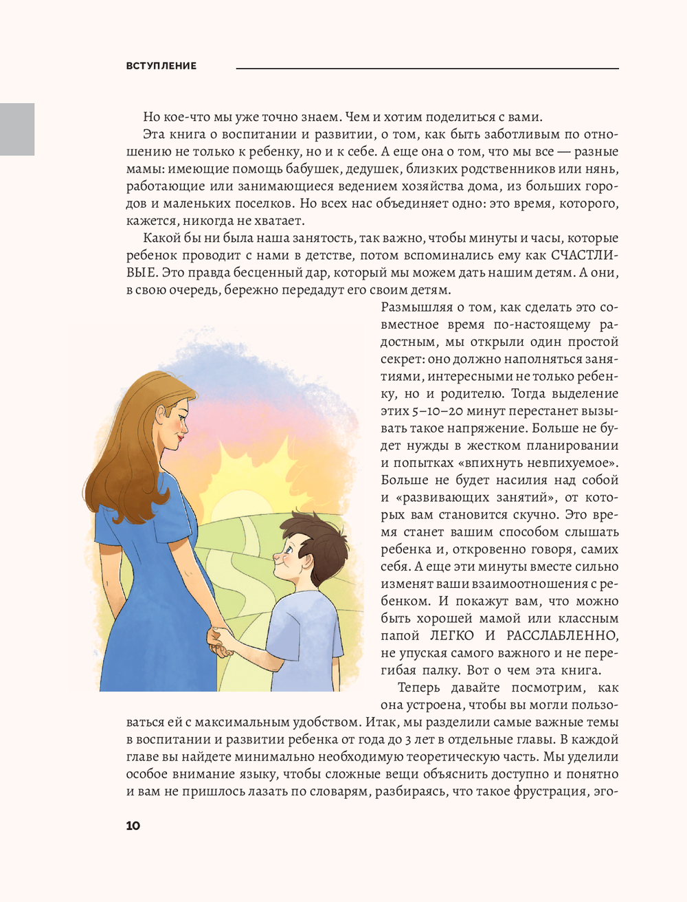 Авторы предлагают родителям практическое пособие с играми. Посмотрите сами, в каждой главе есть раздел "Практика", где указаны минуты на выполнение упражнений. Это и есть то самое качественное "детское время".