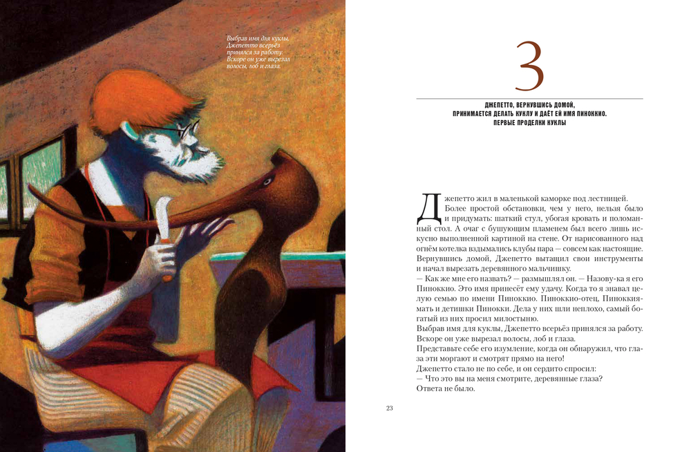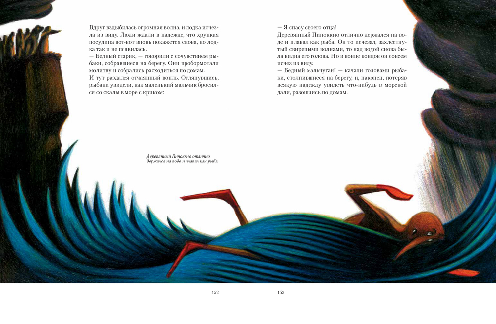Трогательная и волшебная история про озорного деревянного мальчишку уже более ста лет остается одной из самых любимых сказок во всем мире. Неудивительно, что за иллюстрирование этого шедевра итальянского писателя Карло Коллоди брались самые разные художники, придавая знакомому тексту новые очертания.