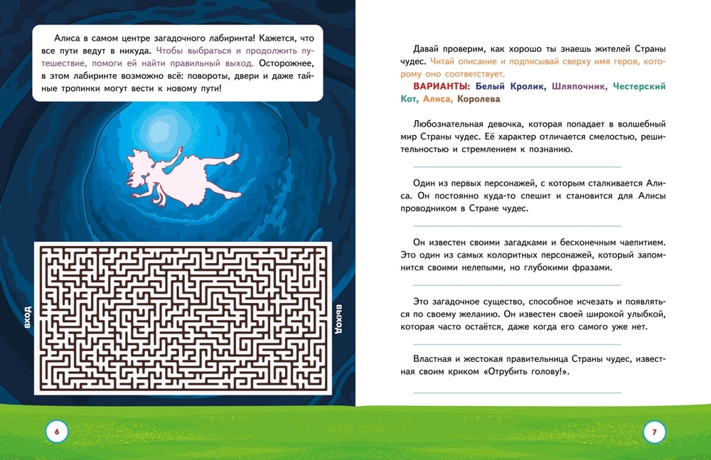 В этой книге тебя ждут захватывающие задания, которые позволят исследовать удивительные приключения Алисы и познакомиться с яркими персонажами: Честерским котом, Безумным Шляпником и Червонной королевой.