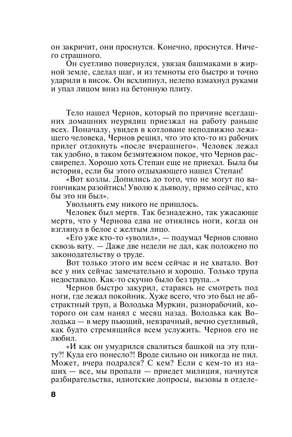 Утром Степану позвонил его зам, Чернов, и сообщил, что обнаружил на стройке супермаркета труп разнорабочего Муркина. Неслабое начало дня! Степан, глава компании "Строительные Технологии" понимал – теперь объясняться придется не только с ментами, но и с заказчиками. А они ребята серьезные. А тут покойник… Да еще местные активисты устраивают марш протеста против стройки торжища якобы на святом месте…