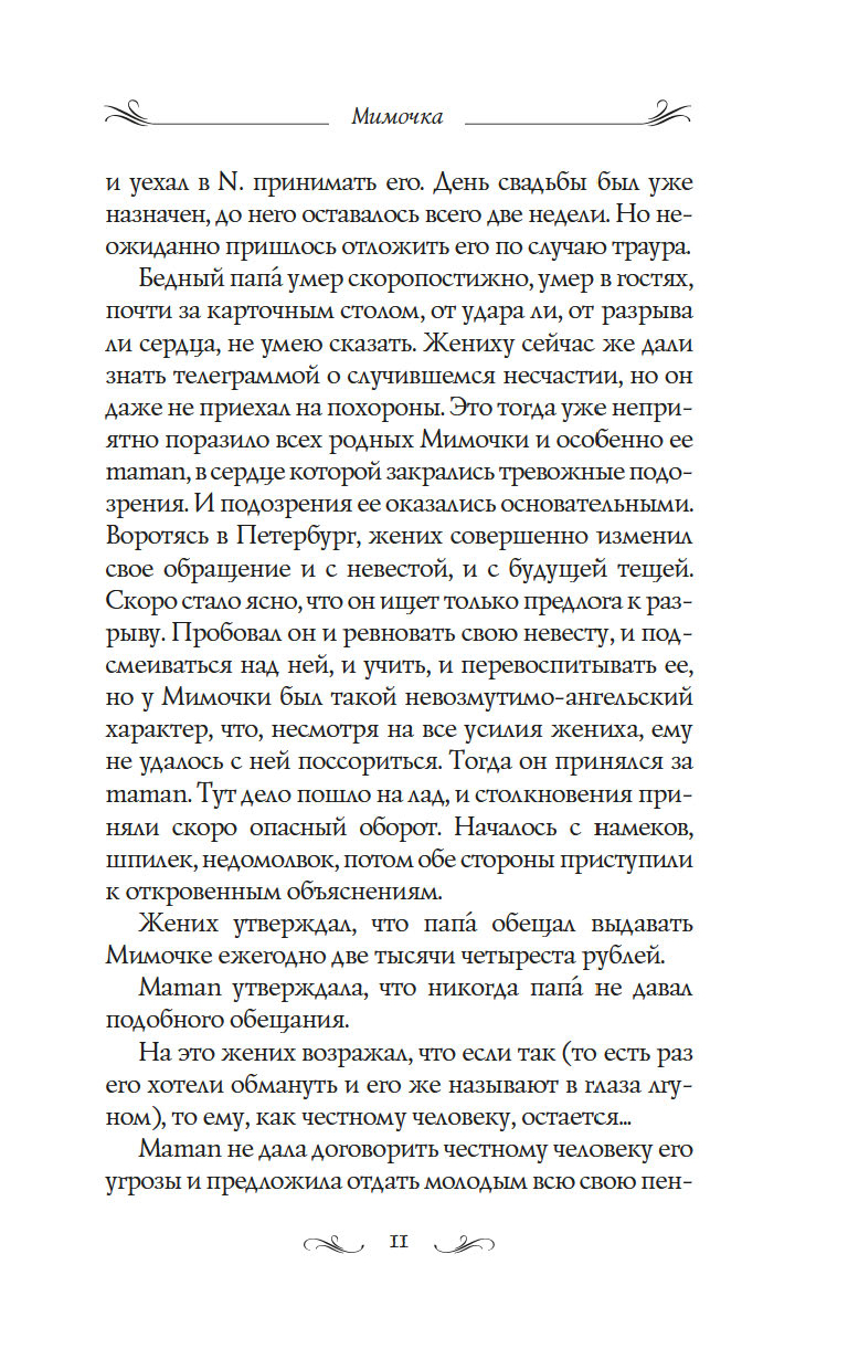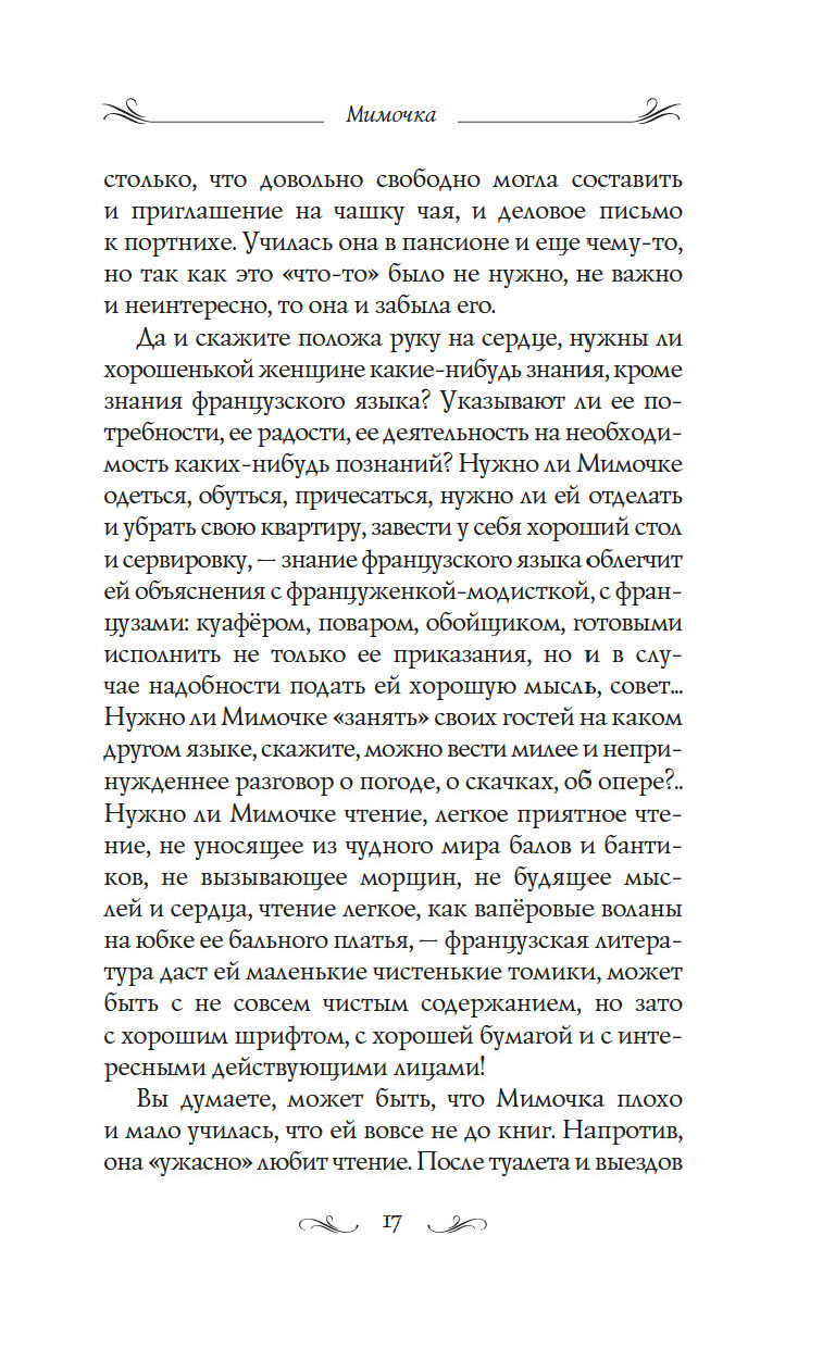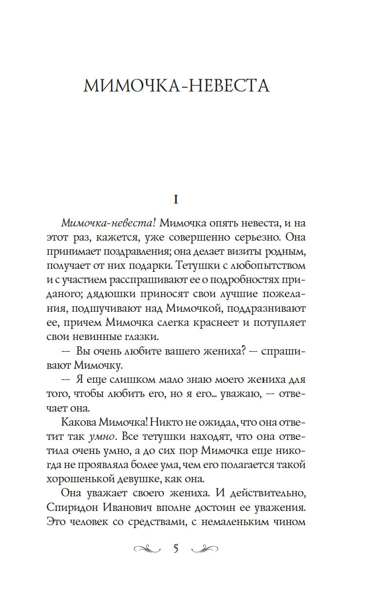 "Мимочка" – это блестящий образец русской сатиры, написанной задолго до Тэффи и Михаила Зощенко, – едкой, смешной, но при этом беззлобной.