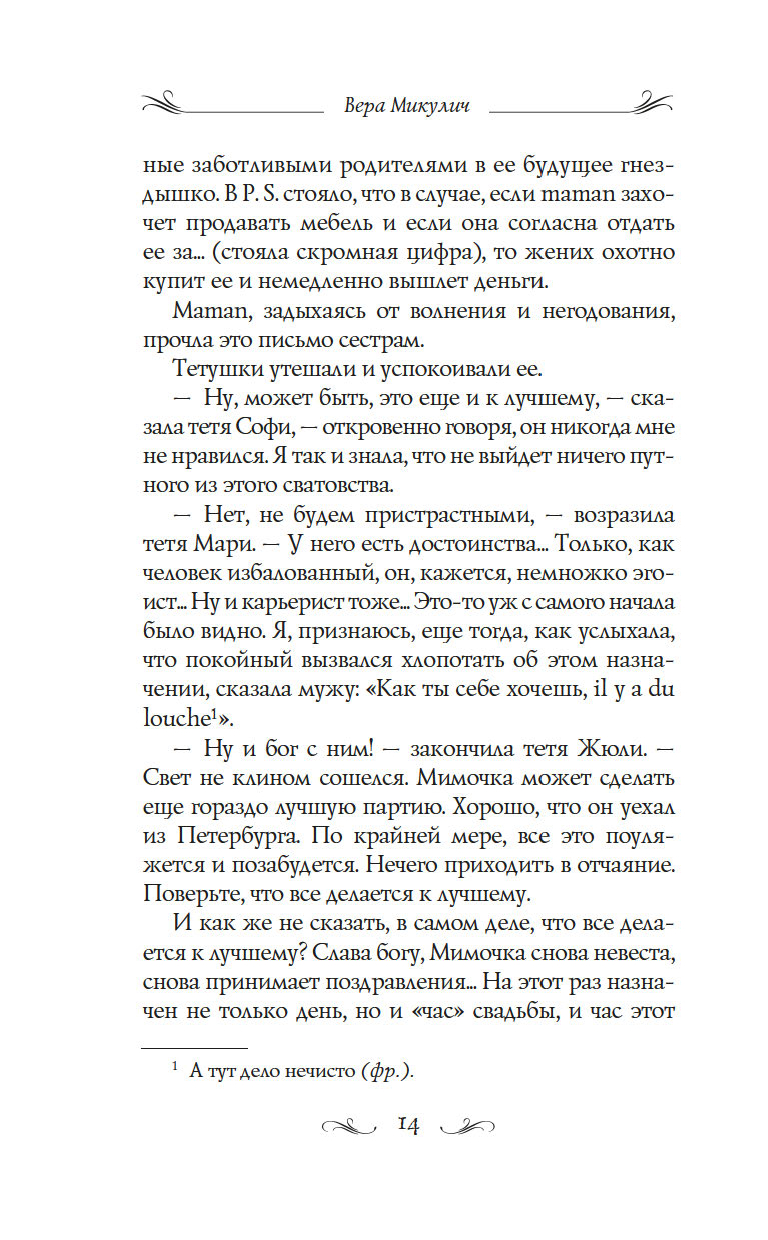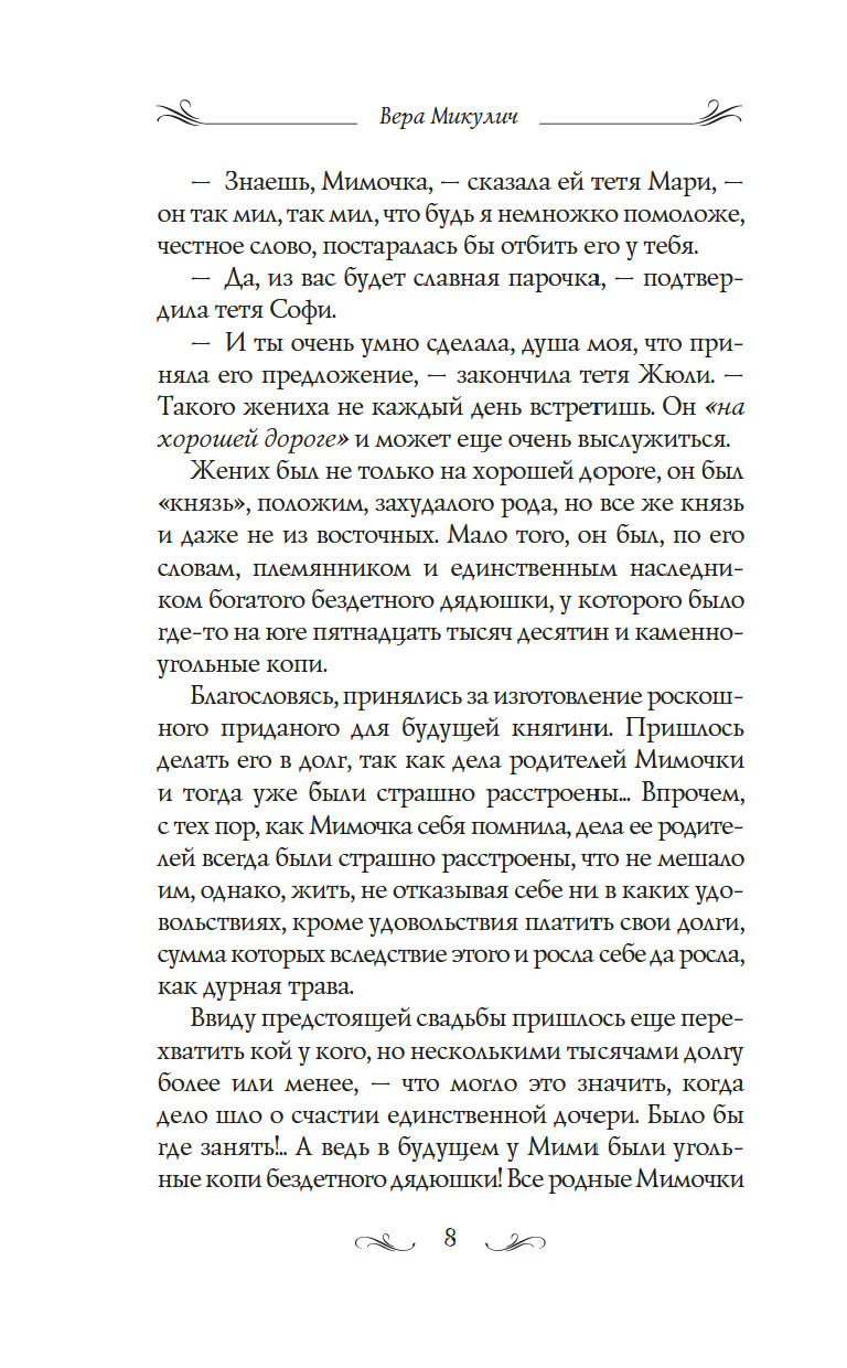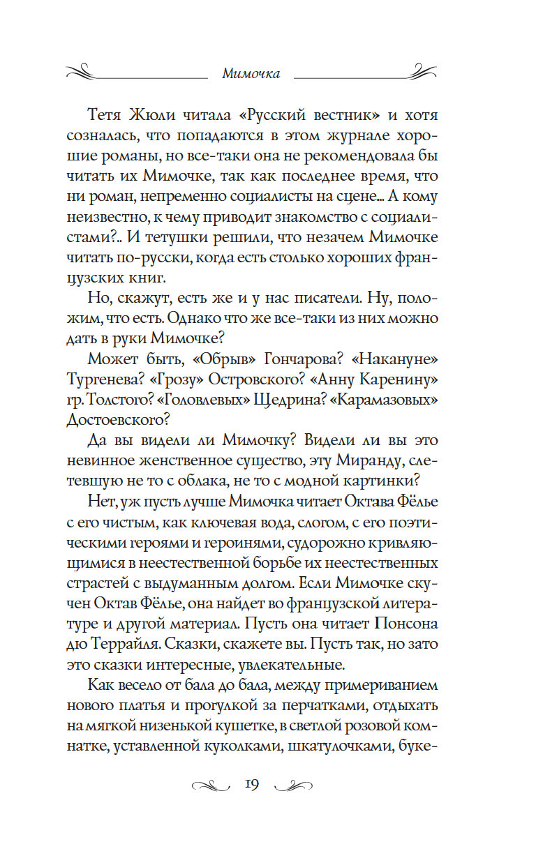 В. Микулич очень метко и иронично рассказала о жизни женщины XIX века. Вопросы, так будоражащие ум и сердце милой Мими, столь остры, что, без сомнения, отзовутся и в душах барышень XXI века.