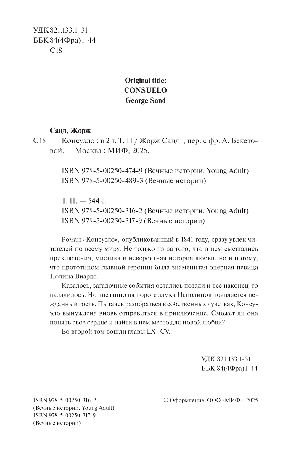 Казалось, загадочные события остались позади и все наконец-то наладилось. Но внезапно на пороге замка Исполинов появляется нежданный гость. Пытаясь разобраться в собственных чувствах, Консуэло вынуждена вновь отправиться в приключение. Сможет ли она понять свое сердце и найти в нем место для новой любви?