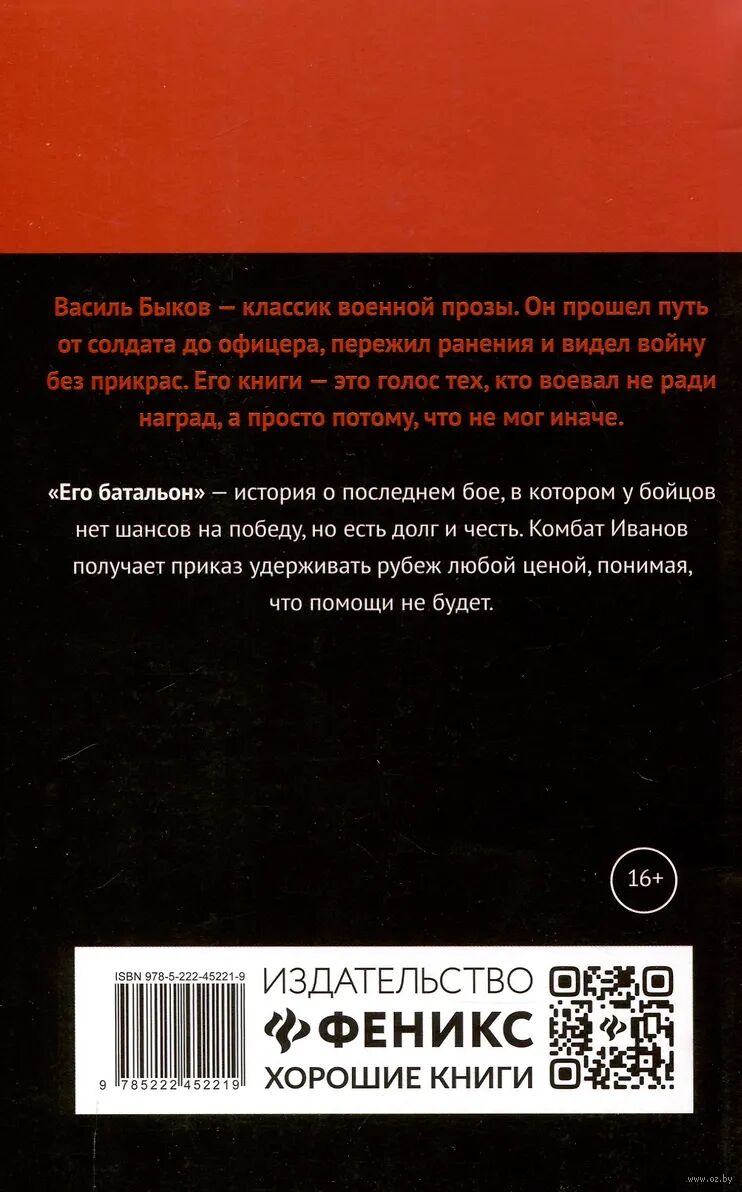 В центре повести Василя Быкова "Его батальон" – один из эпизодов Великой Отечественной войны: взятие высоты, противостояние русских и немецких солдат. По мысли писателя, на войне, показанной как кровавая и трудная работа, самым ценным тем не менее остается жизнь человека.