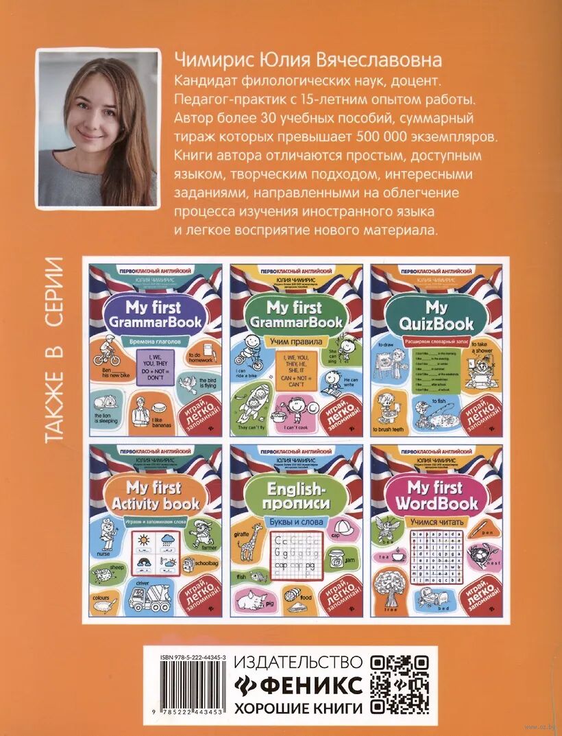 "My first Grammarbook. Учим правила" – пособие, включающее комплексные игровые занятия, направленные на формирование базовых навыков использования английской грамматики в письменной и устной речи. Выполняя упражнения, ребёнок легко и быстро запомнит артикли, правила образования множественного числа и притяжательного падежа существительных, образование отрицательных и вопросительных предложений и многое другое.