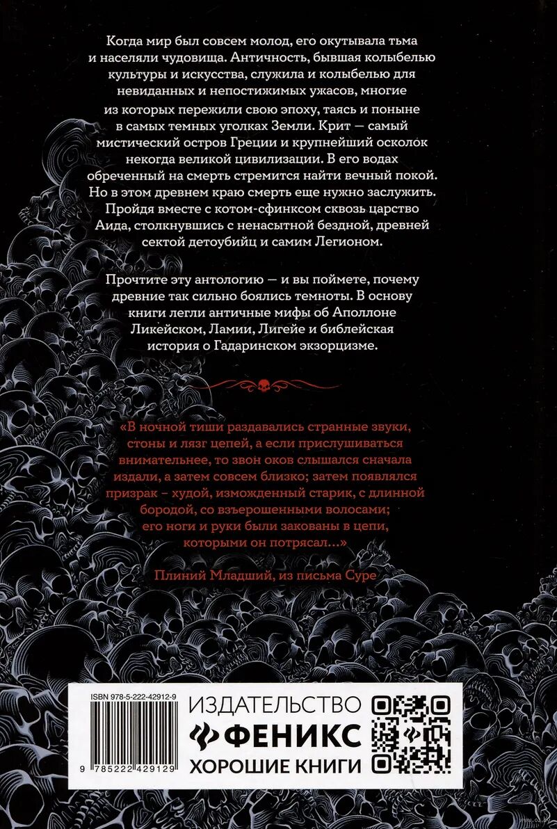 Прочтите эту антологию – и вы поймете, почему древние так сильно боялись темноты. В основу книги легли античные мифы об Аполлоне Ликейском, Ламии, Лигейе и библейская история о Гадаринском экзорцизме.