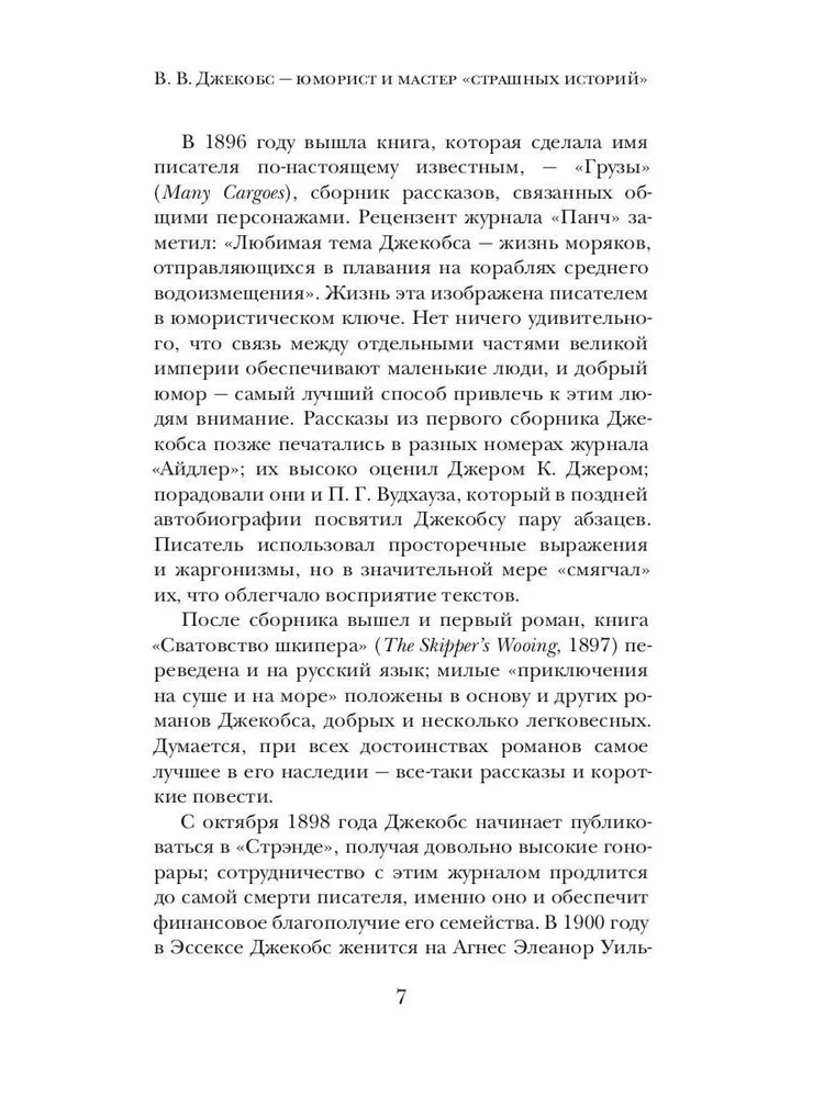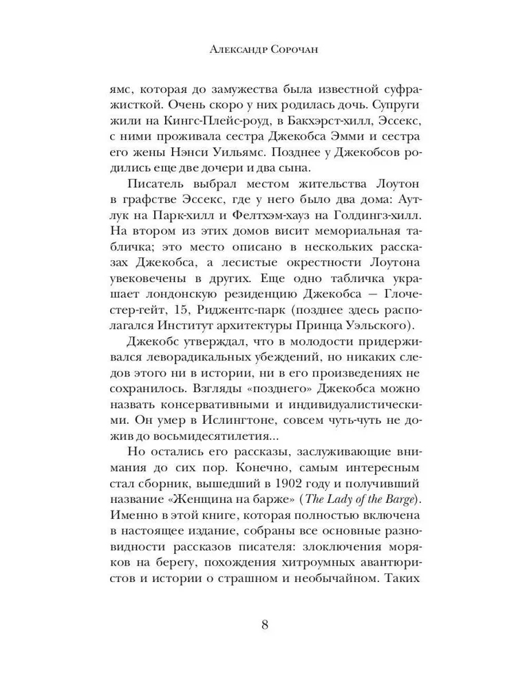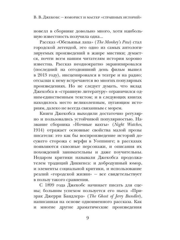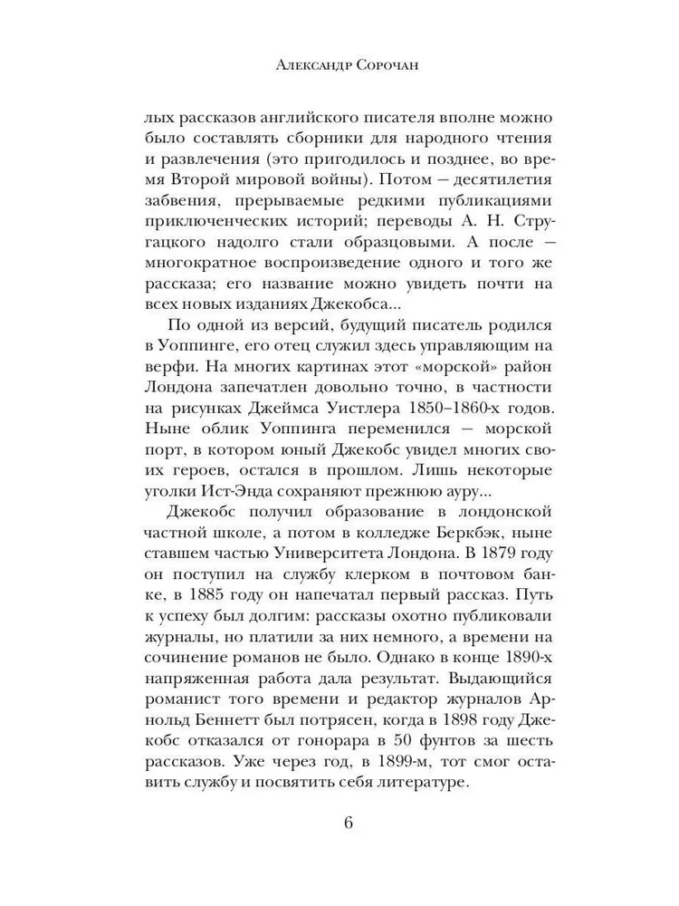 В данном издании собраны мистические, морские и юмористические раскказы выдающегося английского писателя и драматурга В. В. Джекобса, автора культовой "Обезьяньей лапы" и других произведений, составивших золотой фонд мировой литературы.
