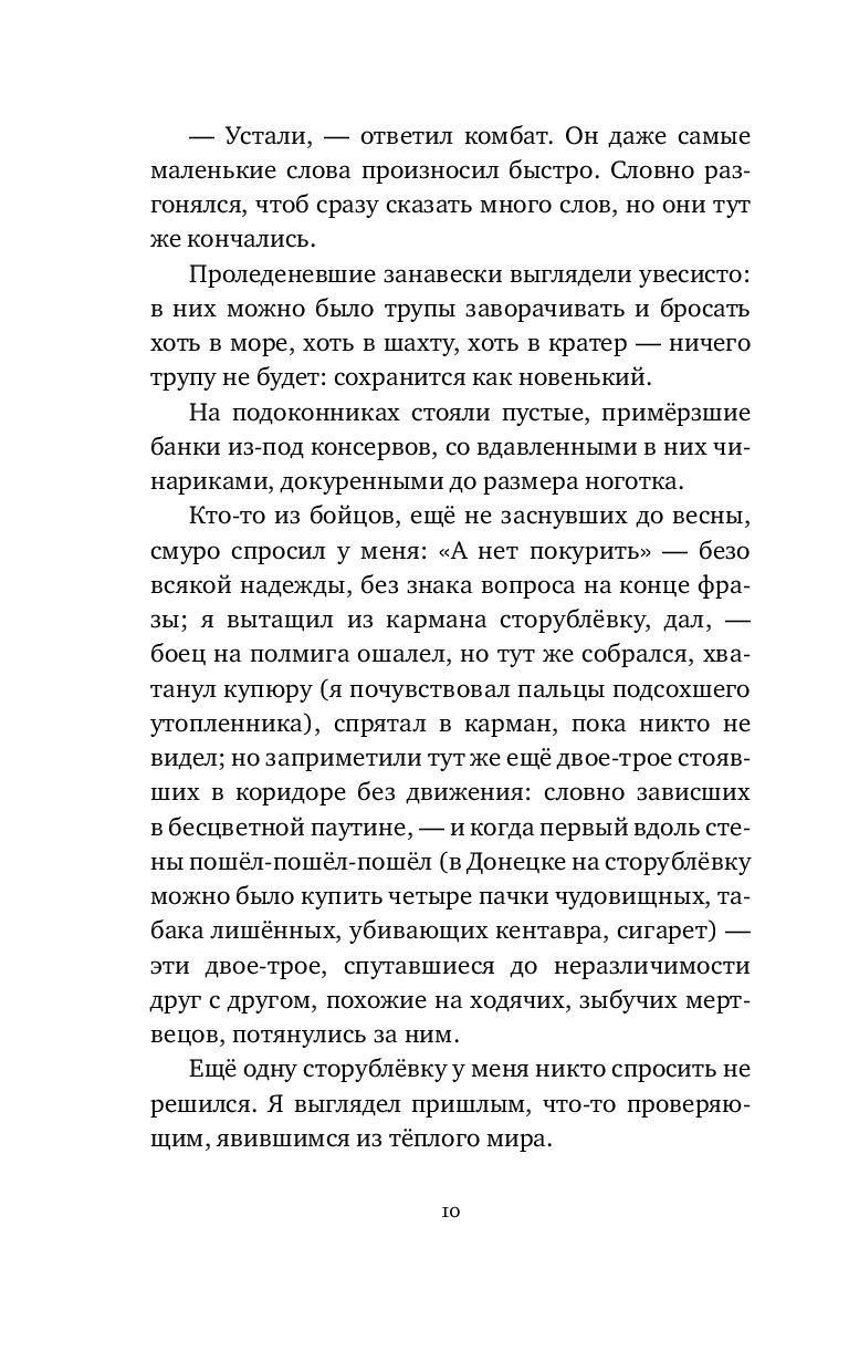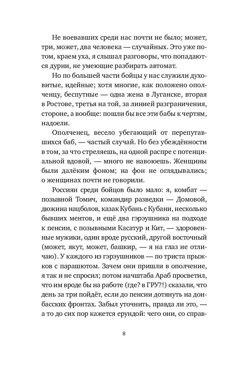 Захар Прилепин – прозаик, публицист, музыкант, обладатель премий "Большая книга", "Национальный бестселлер" и "Ясная Поляна". Автор романов "Обитель", "Санькя", "Патологии", "Чёрная обезьяна", сборников рассказов "Восьмёрка", "Грех", "Ботинки, полные горячей водкой" и "Семь жизней", сборников публицистики "К нам едет Пересвет", "Летучие бурлаки", "Не чужая смута", "Всё, что должно разрешиться. Письма с Донбасса", "Взвод".