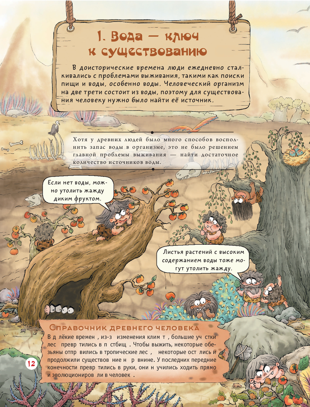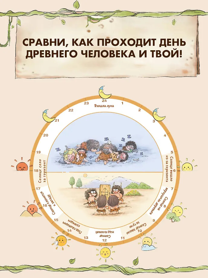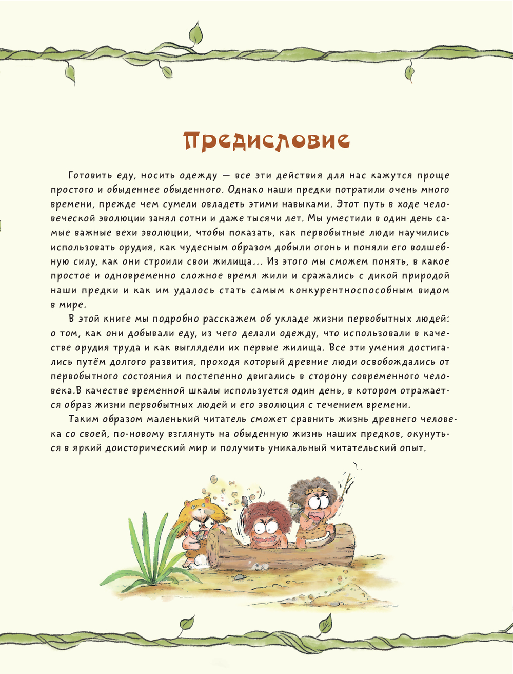 Следуя за временной шкалой, читатель познакомится с самыми важными вехами эволюции, узнает много интересного о доисторическом мире и даже сможет сравнить распорядок дня древнего человека со своим собственным!