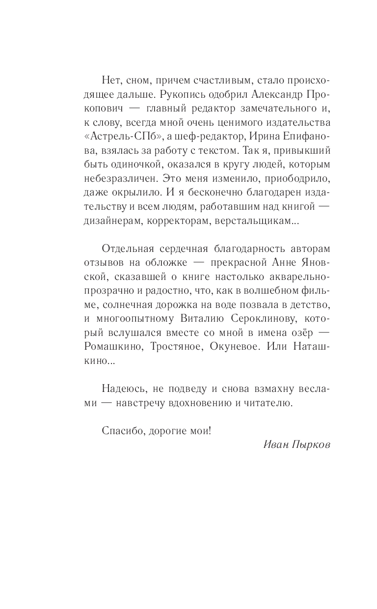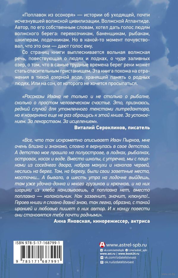 волжского берега: перевозчикам, бакенщикам, рыбакам, шкиперам, лодочникам. Но в какой-то момент почувствовал, что это они – дают голос ему. Со страниц книги выплескивается вольная волжская речь, повествующая о людях и лодках, о чуде заливных озер, о том, что в самые трудные времена берег реки может стать спасительным пристанищем. Эта книга похожа на отражения в тихой озерной воде, хранящей память о родных людях. Или на сон, от которого не хочется просыпаться.
