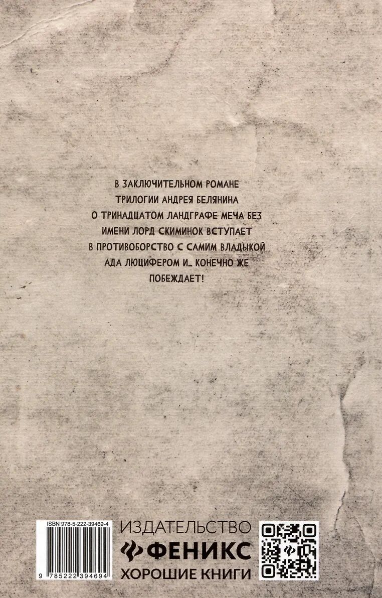В заключительном романе трилогии Андрея Белянина о тринадцатом ландграфе Меча Без Имени лорд Скиминок вступает в противоборство с самим владыкой ада Люцифером и... конечно же побеждает!