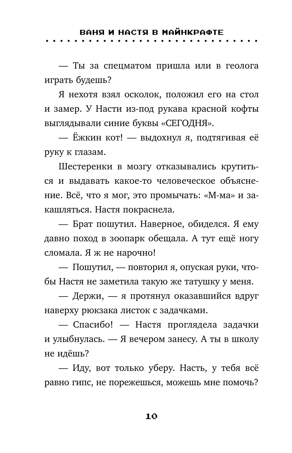 Ванька – смелый и уверенный геймер, готовый к любым приключениям. Настя – скромная и застенчивая девочка, которая ничего не знает о Майнкрафт. Совершенно случайно (или же вовсе не случайно?) они попали в виртуальную игру вместе! Теперь им нужно объединить свои силы, чтобы разгадать загадки и сразиться с врагами. Но главные вопросы остаются открытыми: как они оказались в игре и смогут ли вернуться обратно?