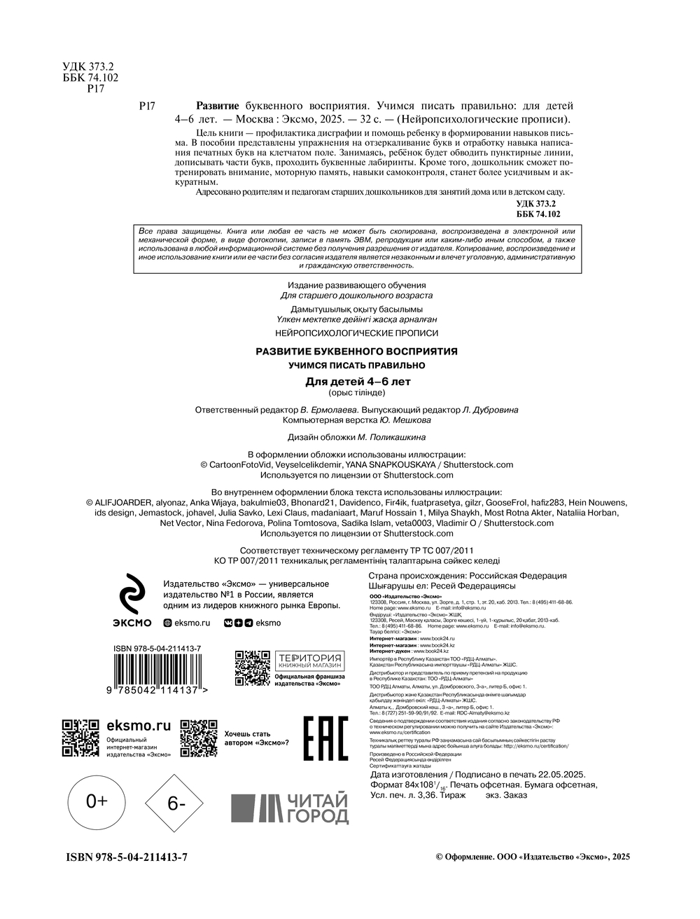 Развитие буквенного восприятия. Учимся писать правильно: для детей 4-6 лет