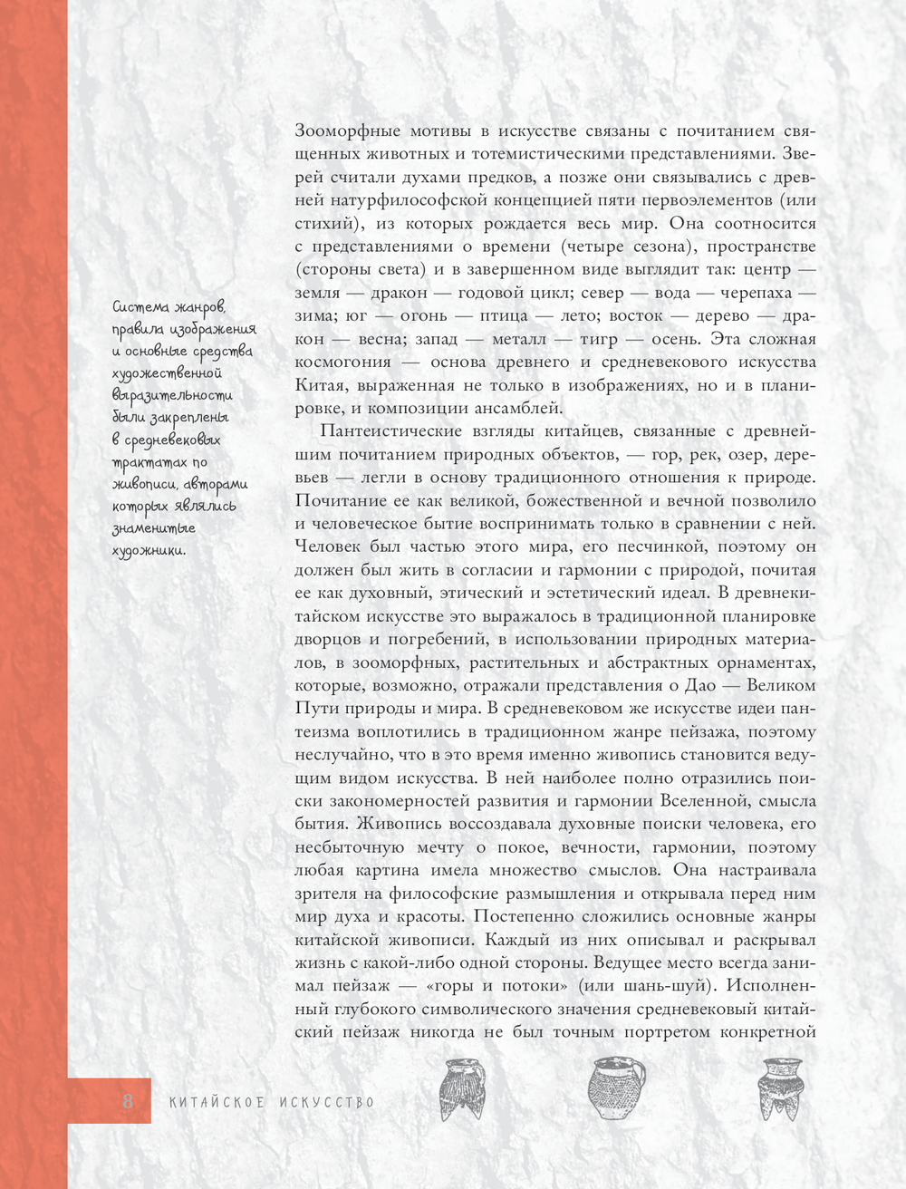 Искусство китайской цивилизации – уникальное явление в мировой культуре. Изящные фарфоровые вазы, величественные пагоды, изысканные вышивки, монументальная живопись – каждое произведение несет в себе глубокий философский смысл и отражает многовековые традиции Китая. Это красочное издание познакомит вас с основными направлениями китайского искусства, принципами построения национальных садов и парков, шедеврами декоративноприкладного искусства. Книга станет незаменимым помощником для всех, кто интересуется восточной культурой, хочет глубже понять философию китайского искусства, стремится приобщиться к богатству мировой художественной традиции.