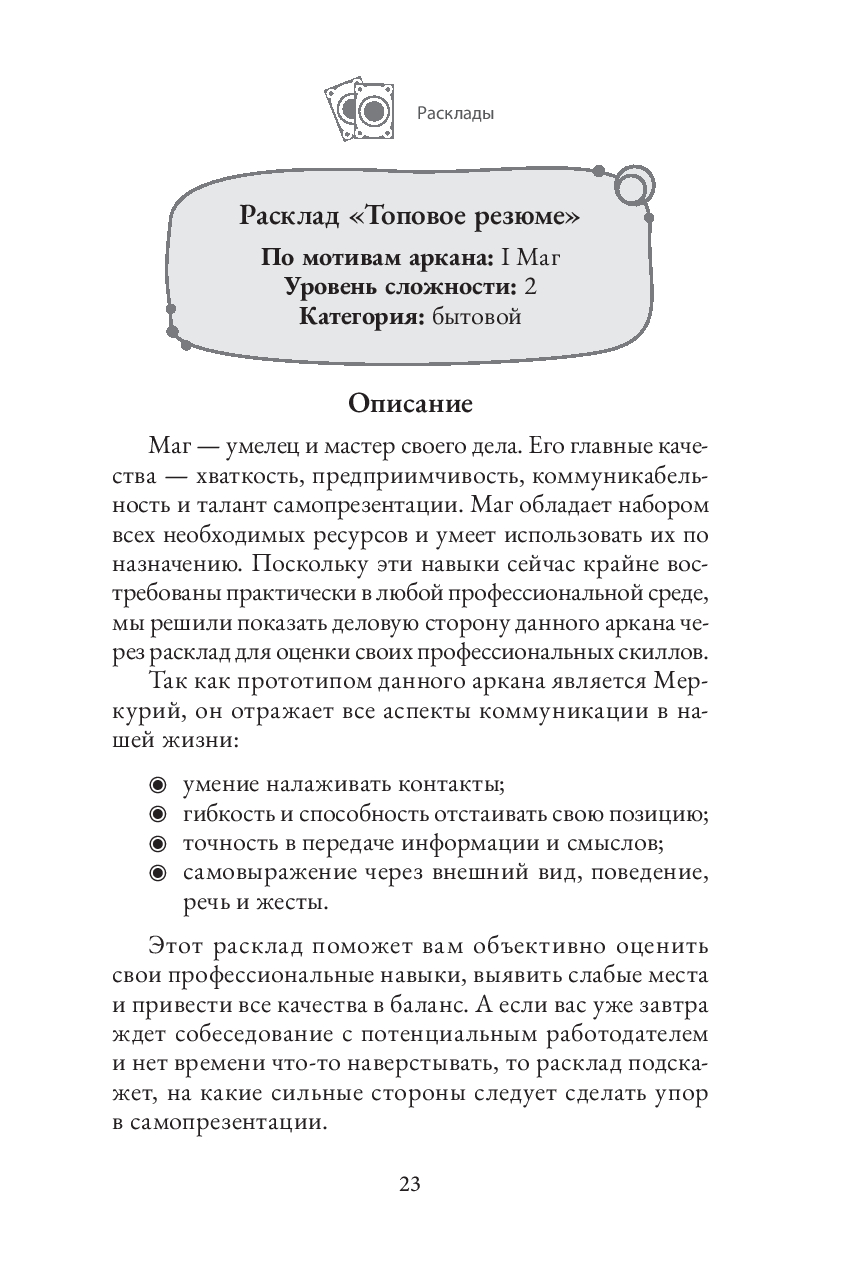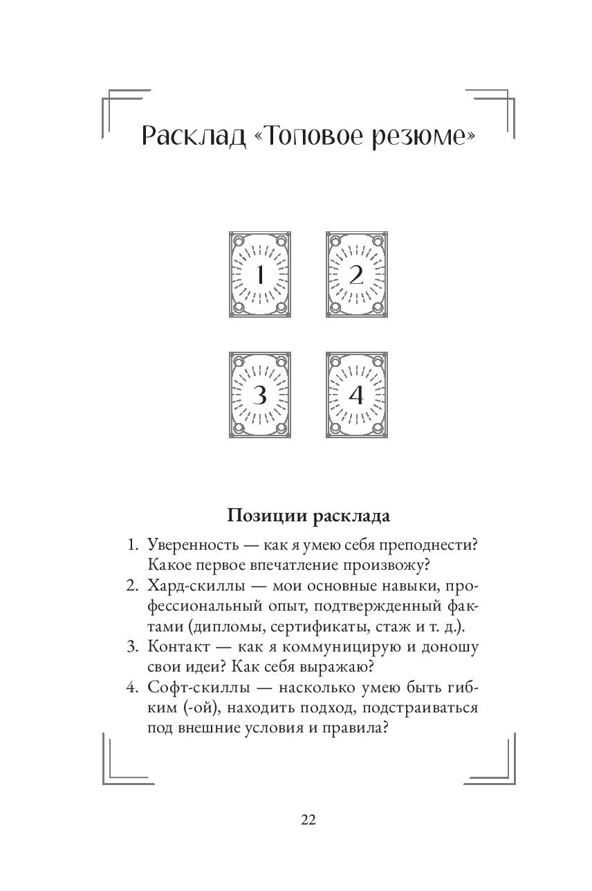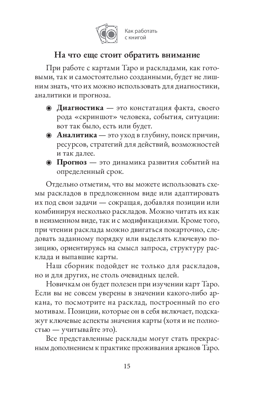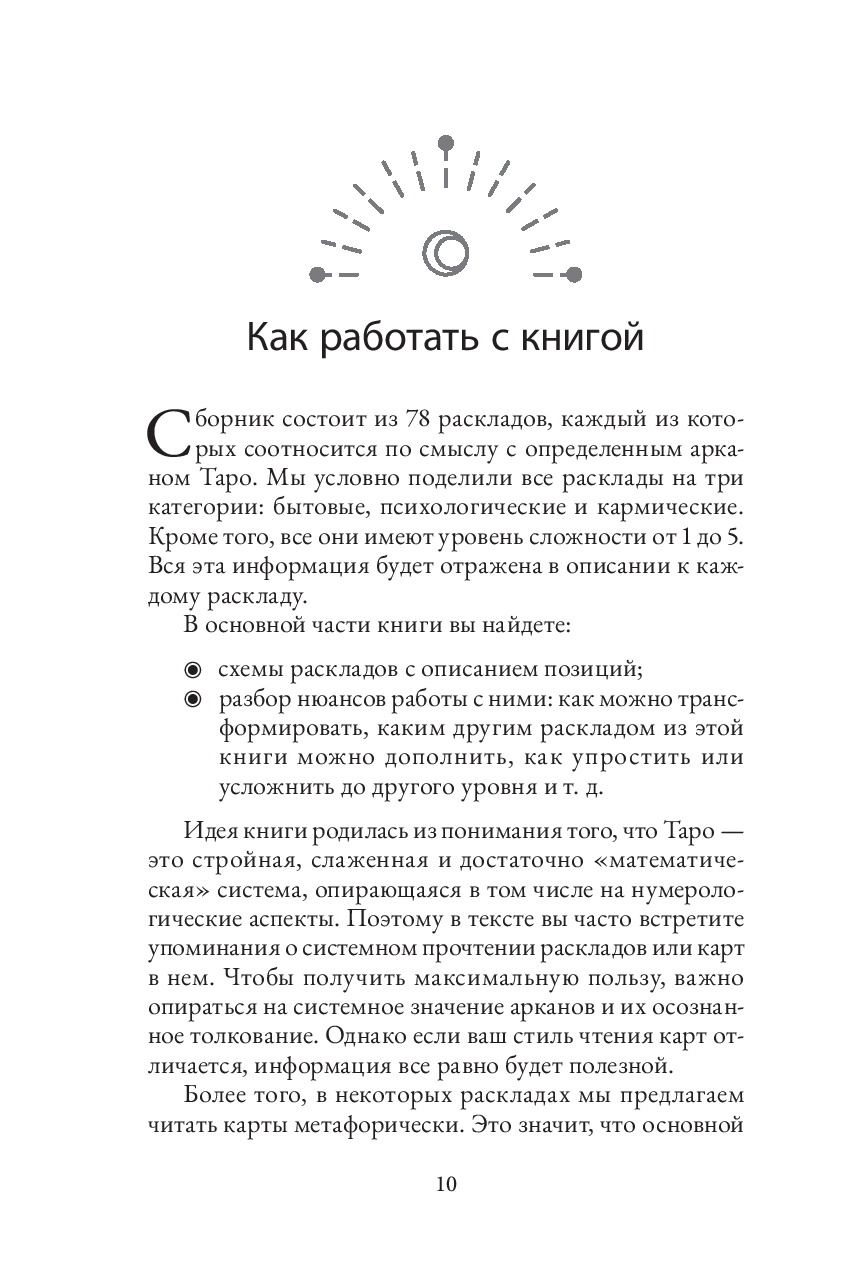 Эта книга научит вас сочетать логическое и интуитивное, учитывать структуру и доверять импровизации, а главное – видеть в раскладе не просто гадание, а путь к самопознанию.