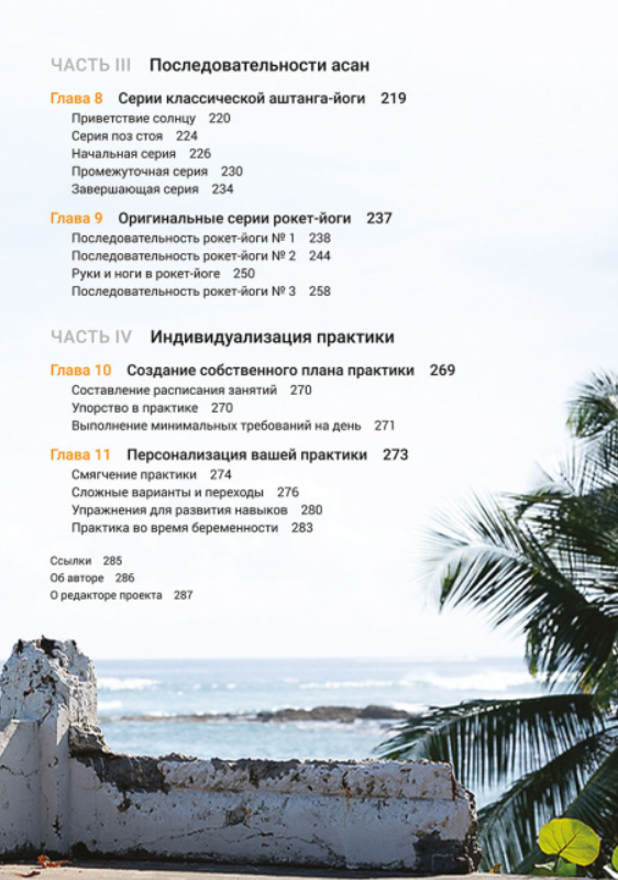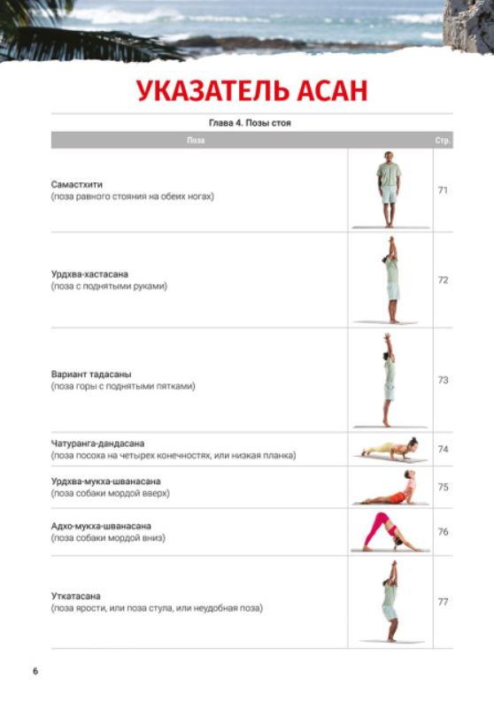 Руководство начинается с безопасных упражнений для подготовки к практике, после чего вашему вниманию представлена целая библиотека асан с потрясающими фотографиями и подробными инструкциями для более чем 90 поз. Каждая поза сопровождается вариантами выполнения, позволяющими адаптировать движения к возможностям вашего тела, что поможет в составлении индивидуального плана занятий.