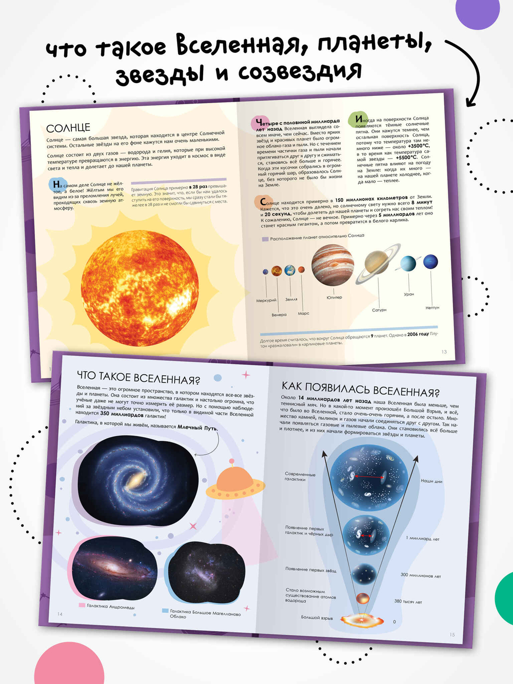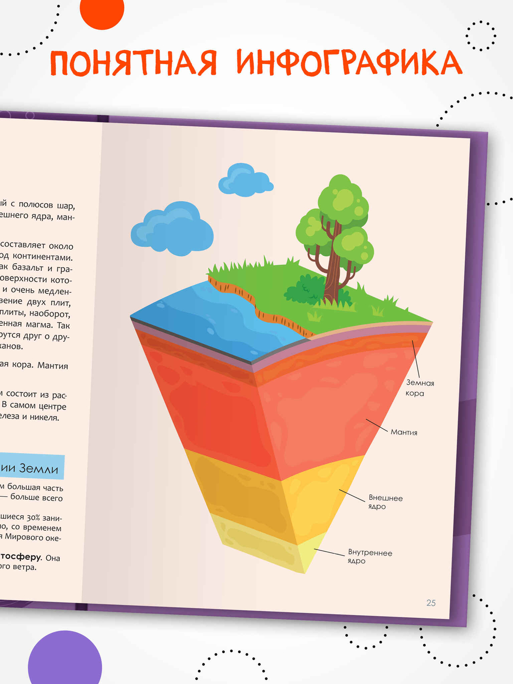 Идеальный подарок для любознательного ребенка. Благодаря этой книжке ребенок сможет поближе познакомиться с планетами Солнечной системы, а также с устройством земного шара и узнать, что такое круговорот воды в природе и почему так важен кислород для всего живого на Земле. Интересные факты проиллюстрированы яркими фотографиями и понятной инфографикой, которые помогут полностью погрузиться в изучение предмета и узнать новое об окружающем мире.