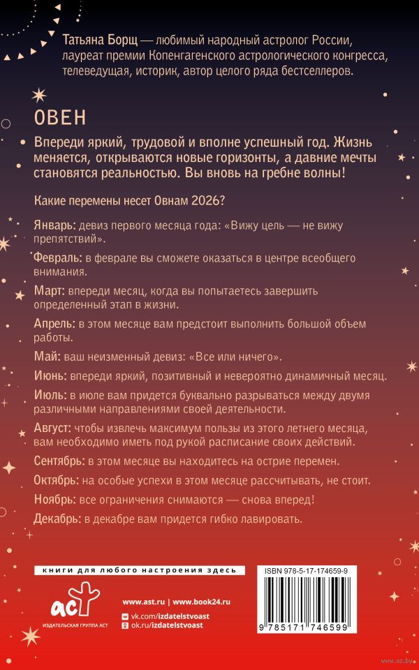 Татьяна Борщ – любимый народный астролог России, лауреат премии Копенгагенского астрологического конгресса, телеведущая, историк, автор целого ряда бестселлеров.