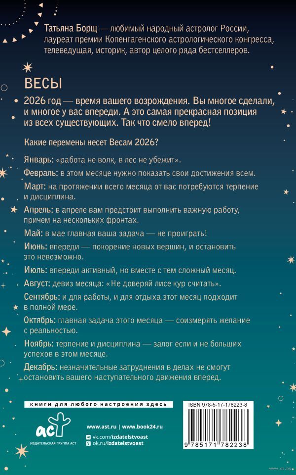 Татьяна Борщ – любимый народный астролог России, лауреат премии Копенгагенского астрологического конгресса, телеведущая, историк, автор целого ряда бестселлеров.