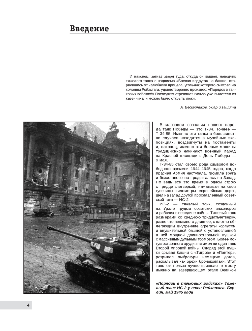 Снаряд пушки ИС-2 срывал башни с "Тигров" и "Пантер", разрывал амбразуры немецких дотов, как орехи раскалывал бронеколпаки. Более могущественного орудия, чем созданный на Урале "Иосиф Сталин-2", не имел ни один танк Второй Мировой войны. Тяжелый танк размерами со средний Т-34, с плотно облегающим внутренние агрегаты корпусом и внушительной башней с длинноствольной пушкой с массивным дульным тормозом, великолепно показал себя на завершающем этапе Великой Отечественной, когда Красной Армии пришлось прорывать многочисленные оборонительные валы и брать штурмом сильно укрепленные города. ИСы принимали участие в штурме Кенигсберга, Будапешта, Познани, Данцига, Бреслау, их гусеницы хорошо помнят мостовые Вены, Праги и Берлина. На фотографиях поверженной столицы Третьего Рейха танков ИС-2, намотавших на свои траки сотни километров европейских дорог, едва ли не больше, чем "Тридцатьчетверок".