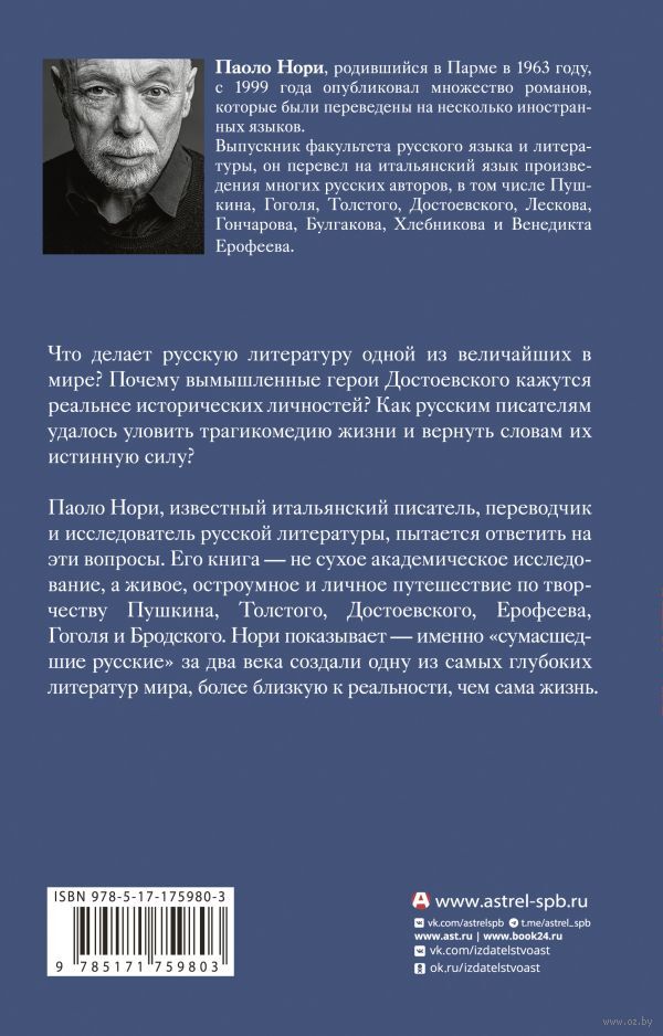 Паоло Нори, известный итальянский писатель, переводчик и исследователь русской литературы, пытается ответить на эти вопросы. Его книга – не сухое академическое исследование, а живое, остроумное и личное путешествие по творчеству Пушкина, Толстого, Достоевского, Ерофеева, Гоголя и Бродского. Нори показывает – именно "сумасшедшие русские" за два века создали одну из самых глубоких литератур мира, более близкую к реальности, чем сама жизнь.