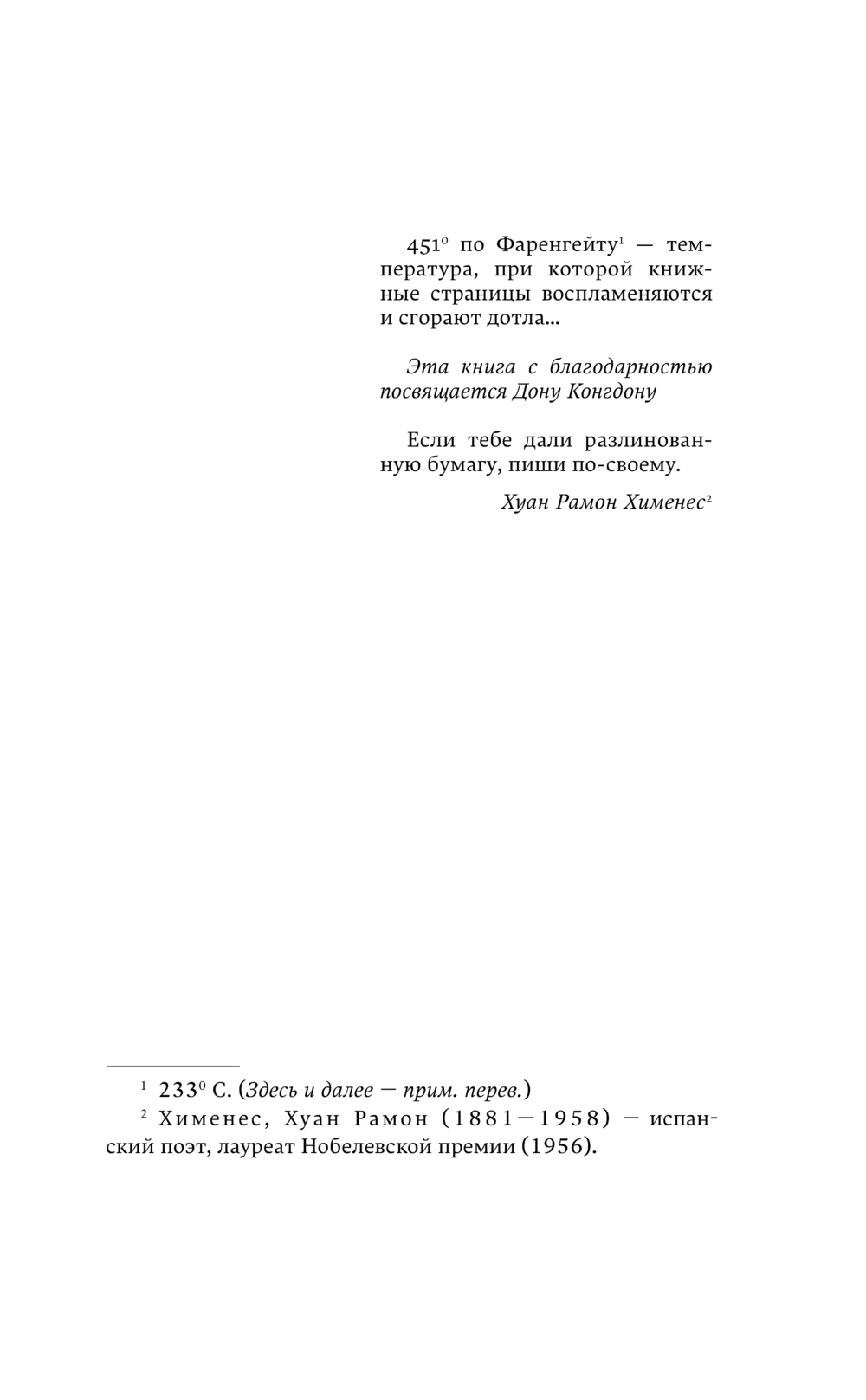 451° по Фаренгейту – температура, при которой воспламеняется и горит бумага. Философская антиутопия Брэдбери рисует беспросветную картину развития постиндустриального общества: это мир будущего, в котором все письменные издания безжалостно уничтожаются специальным отрядом пожарных, а хранение книг преследуется по закону, интерактивное телевидение успешно служит всеобщему оболваниванию, карательная психиатрия решительно разбирается с редкими инакомыслящими, а на охоту за неисправимыми диссидентами выходит электрический пес…