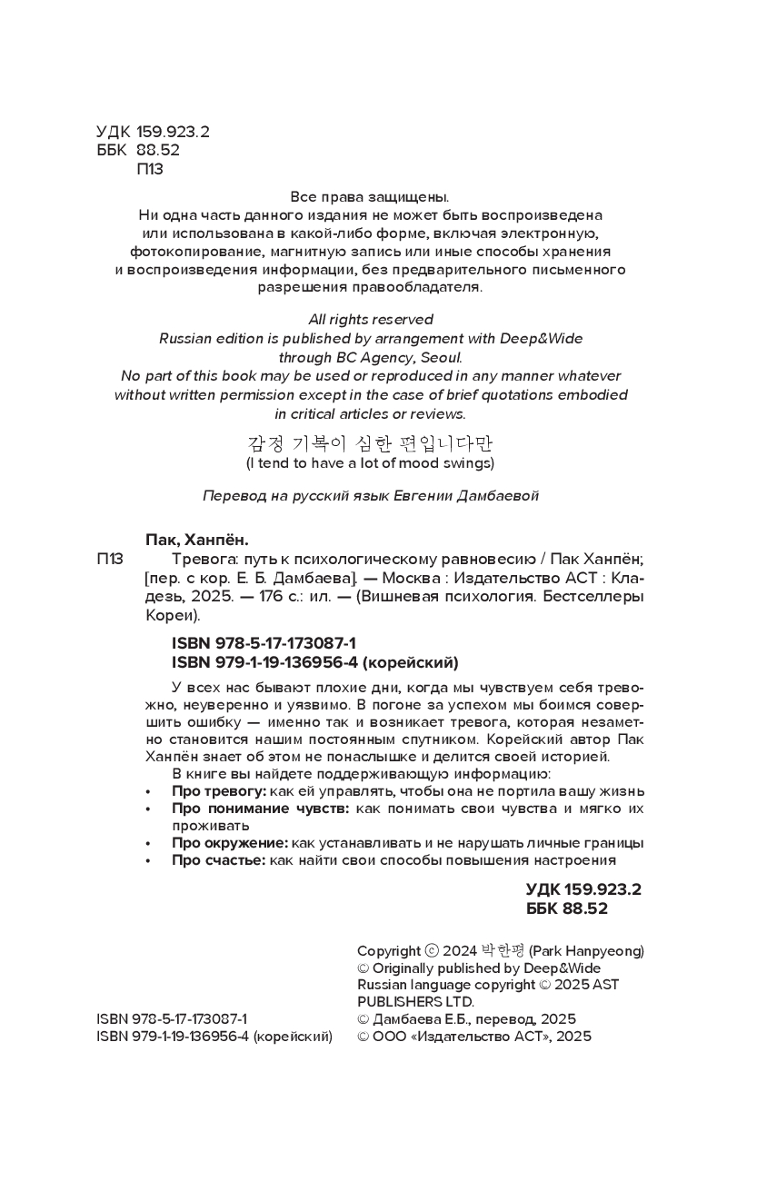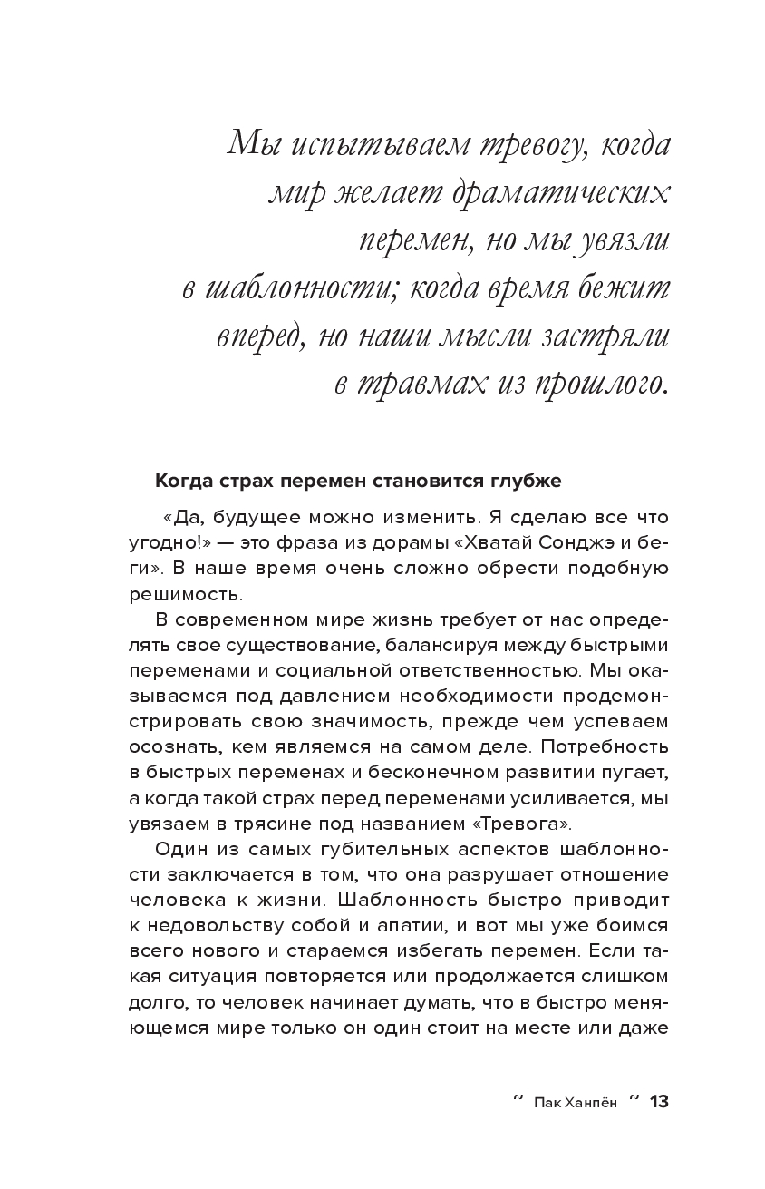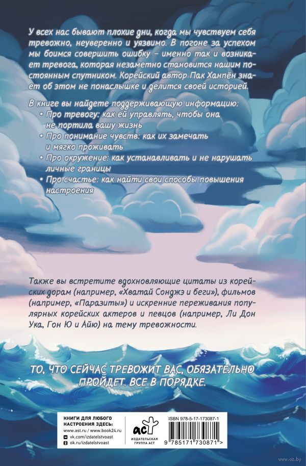 У всех нас бывают плохие дни, когда мы чувствуем себя тревожно, неуверенно и уязвимо. В погоне за успехом мы боимся совершить ошибку – именно так и возникает тревога, которая незаметно становится нашим постоянным спутником. Корейский автор Пак Ханпён знает об этом не понаслышке и делится своей историей.
