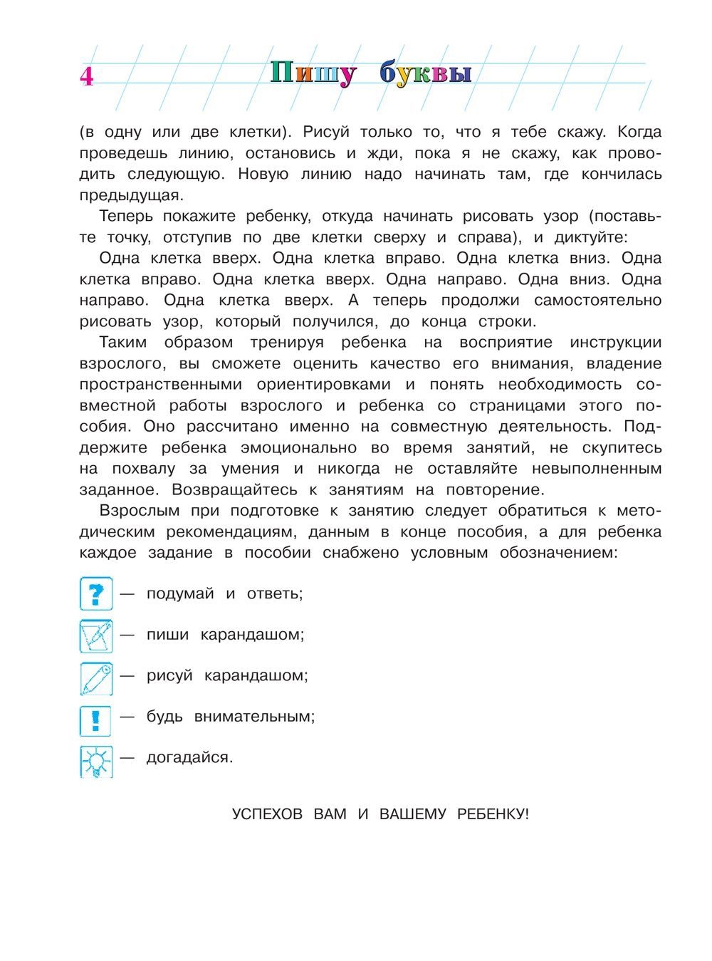 Письмо в среднем и старшем дошкольном возрасте подразумевает "печатание" букв, слогов и слов, что позволяет в дальнейшем легко распознавать буквы при чтении. Порядок изучения букв, предложенный в занятиях, большое количество разнообразных подготовительных, тренировочных и творческих заданий помогут ребенку быстро овладеть навыками чтения и письма.