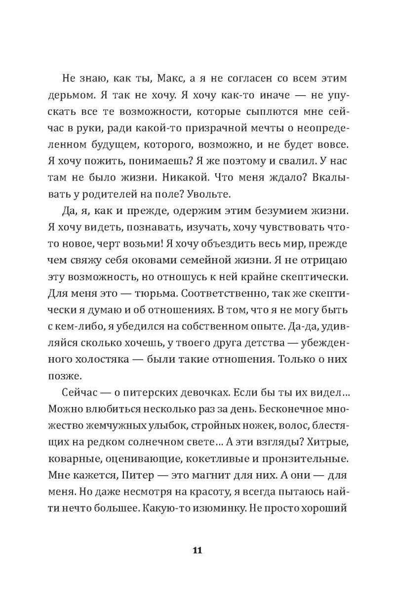 Друзья детства Макс и Вик выбрали для общения старомодный способ – письма. Из Питера в Ростов-папу и обратно вереницей летят рассказы о любовных похождениях парней. Девушки в этих историях сменяют одна другую порой быстрее, чем письмо доходит до адресата. Найдут ли наши герои ту самую, единственную, или она им все же не нужна?