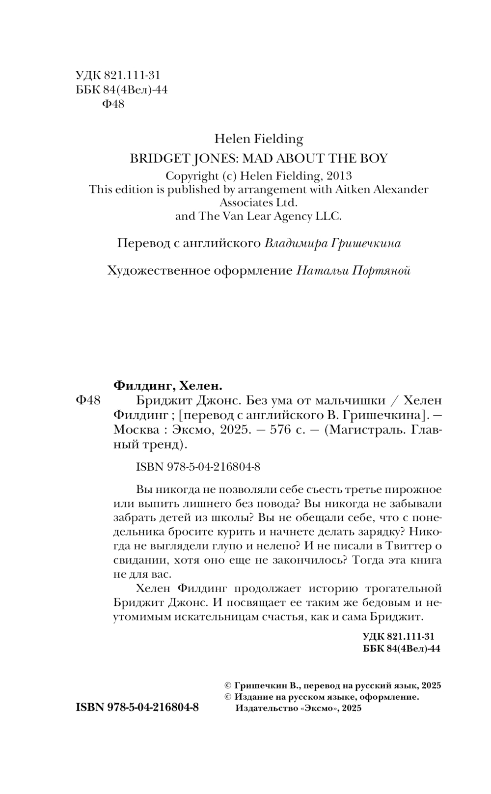 Хелен Филдинг продолжает историю трогательной Бриджит Джонс. И посвящает ее таким же бедовым и неутомимым искательницам счастья, как и сама Бриджит.