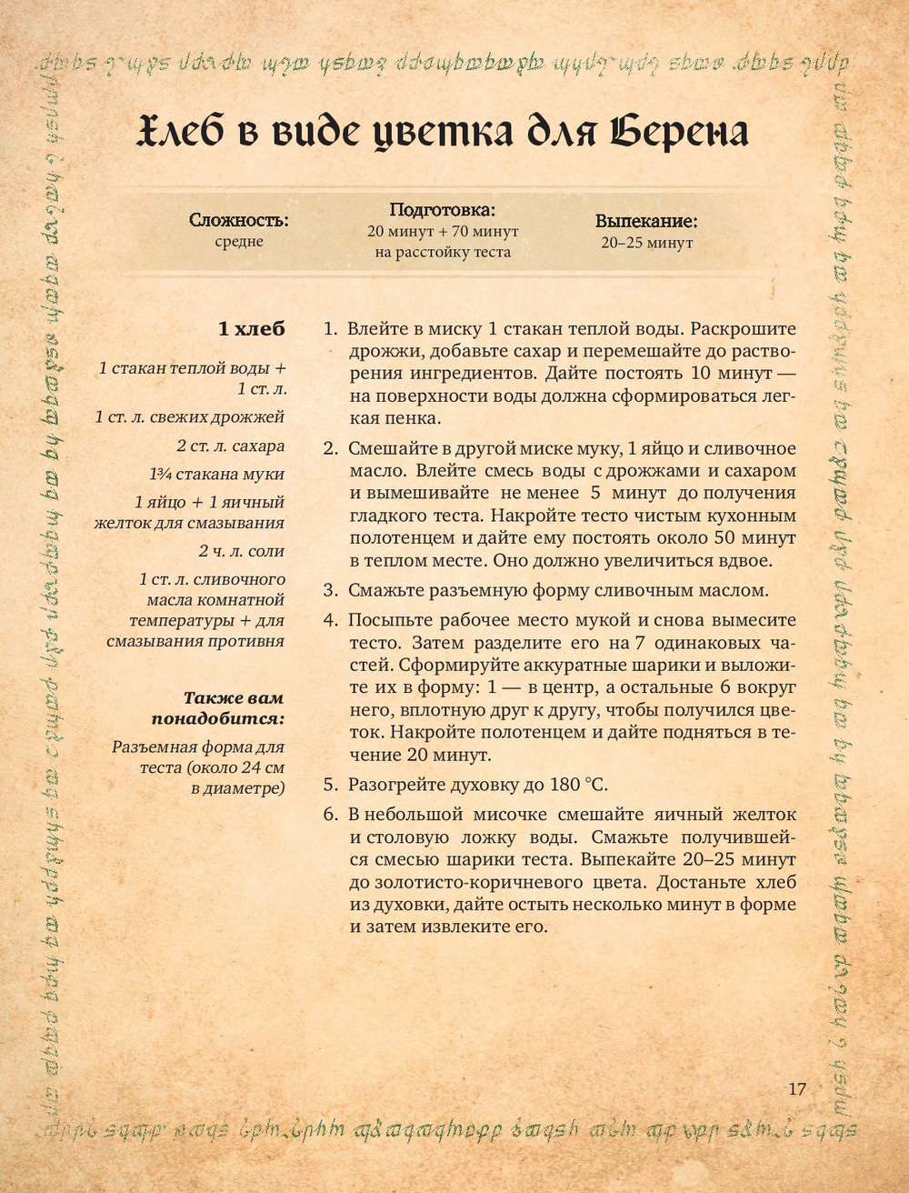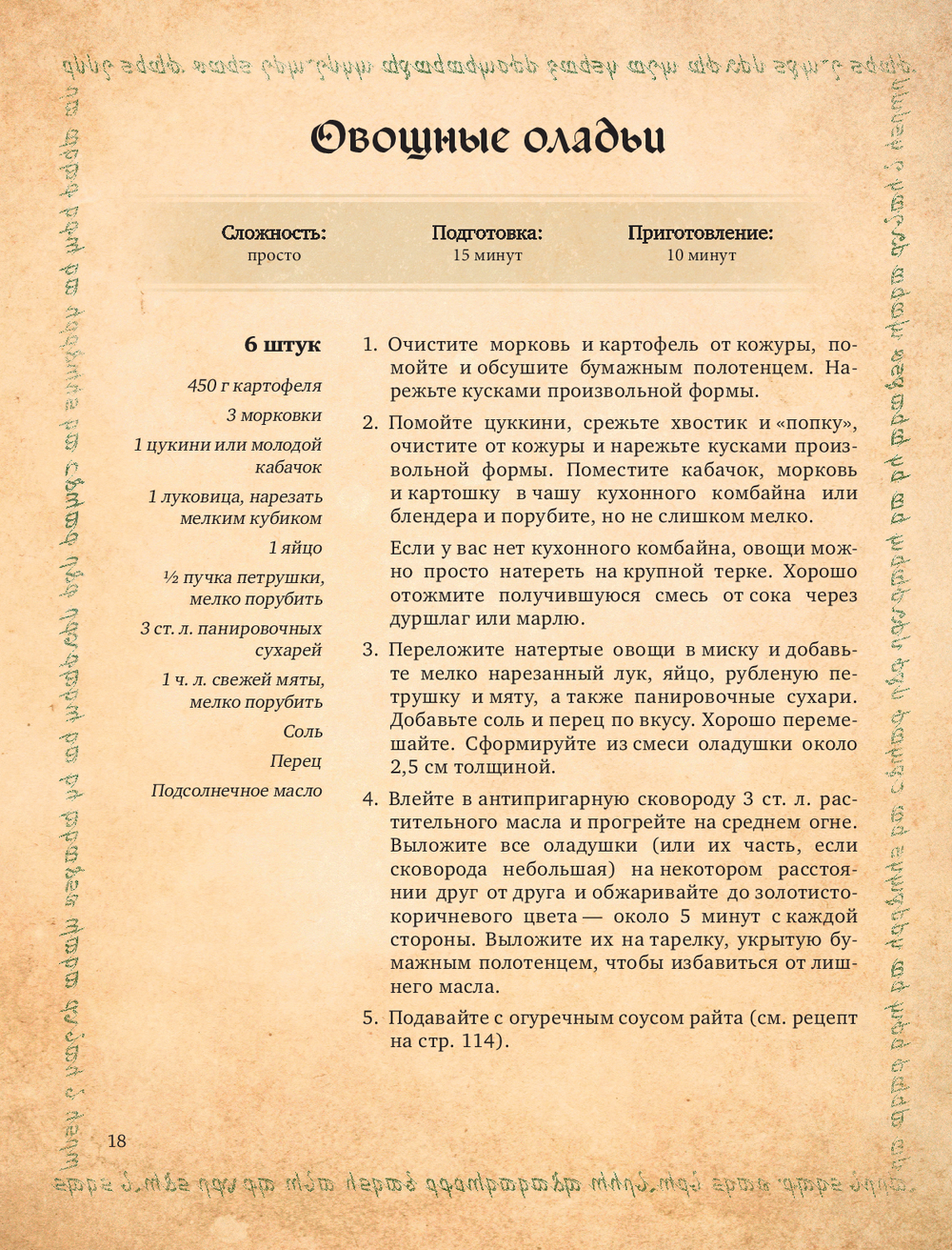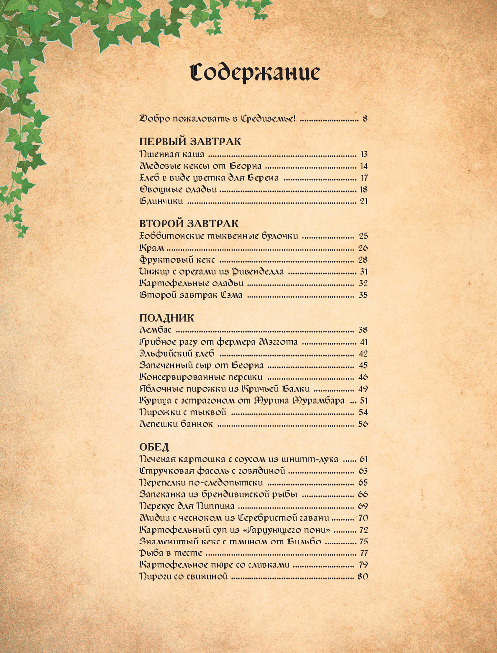 Вас ждет более 60 рецептов, вдохновленных легендарной фэнтези-вселенной Дж. Р. Р. Толкина. Это не только волшебный эльфийский хлеб и рагу, но и знаменитый кекс с тмином от Бильбо, гномья курица с эстрагоном от Турина, хоббитонские тыквенные булочки и другое. А если вы орк и едите совсем другие вещи – не отчаивайтесь, и для вас припасено кое-что: жаркое из хоббитов, хлеб на палках и истинно орочье варево.