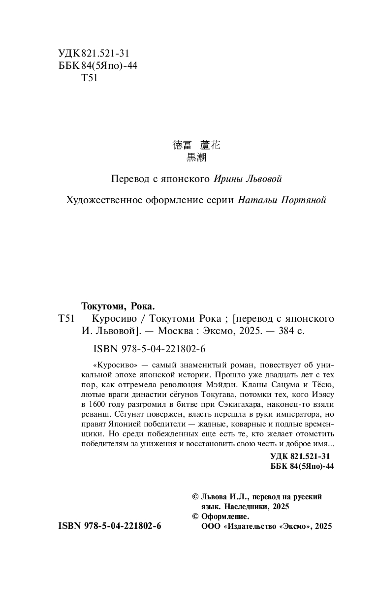 "Куросиво" – самый знаменитый роман, повествует об уникальной эпохе японской истории.