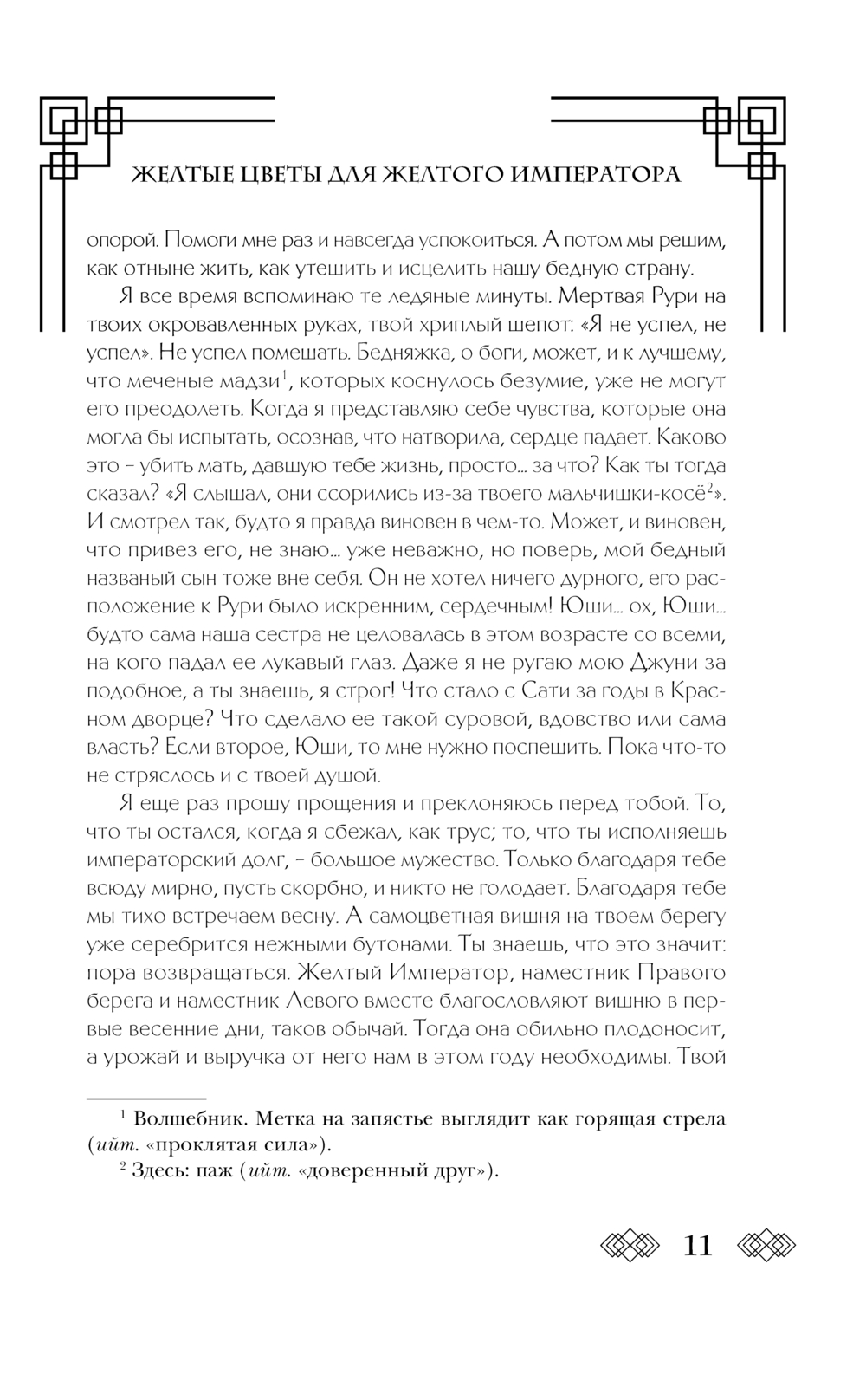 Они идут в столицу, чтобы отомстить узурпатору и спасти законного наследника престола. Они сильные воины, готовые на всё ради страны. Но они скрывают опасные секреты – и никто не знает правды о страшном дне, когда на крови Императрицы выросли жёлтые цветы...