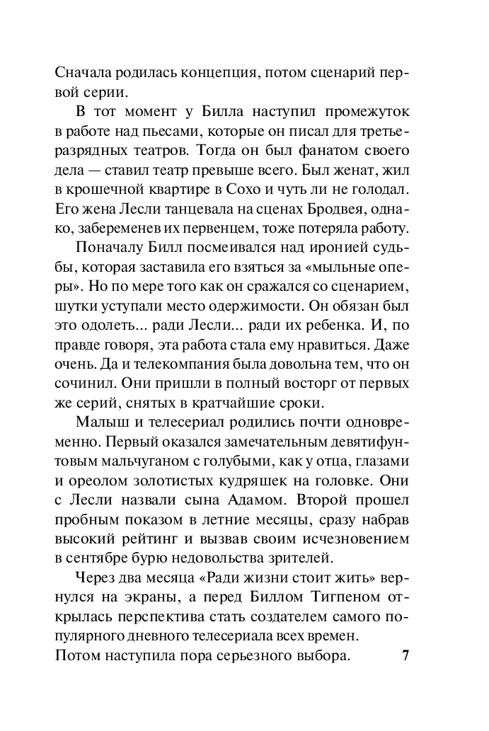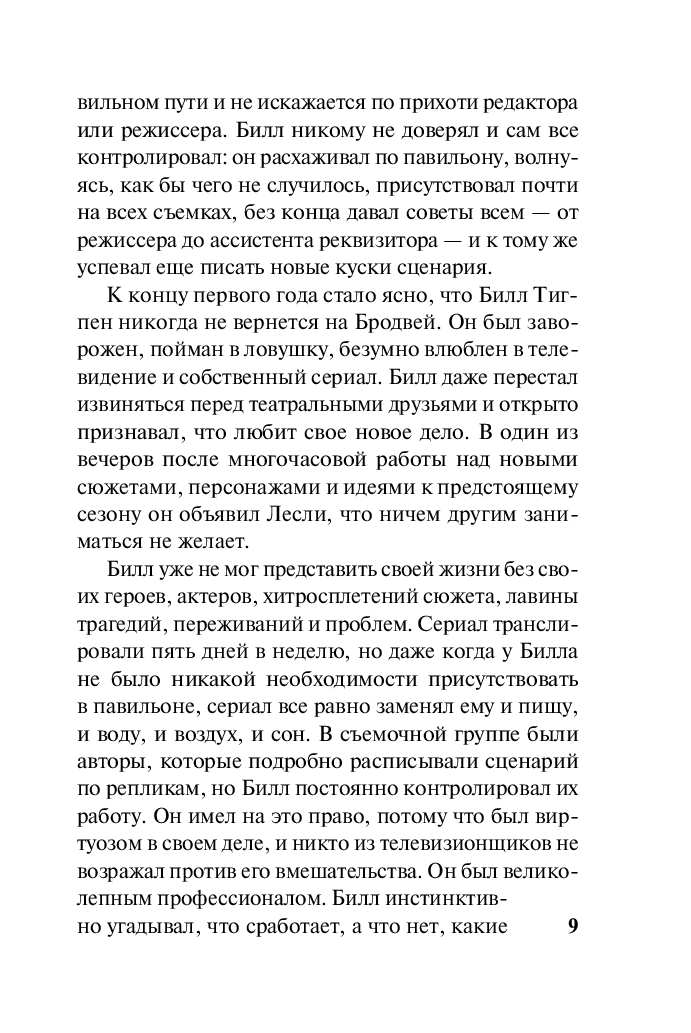 Билл Тигпен, сценарист и продюсер популярного сериала, был настолько озабочен своей карьерой, что не заметил, как рухнул его брак. Теперь, девять лет спустя, его жизнь в Голливуде близка к идеалу: профессиональный успех, ни к чему не обязывающие связи, каникулы с сыновьями…