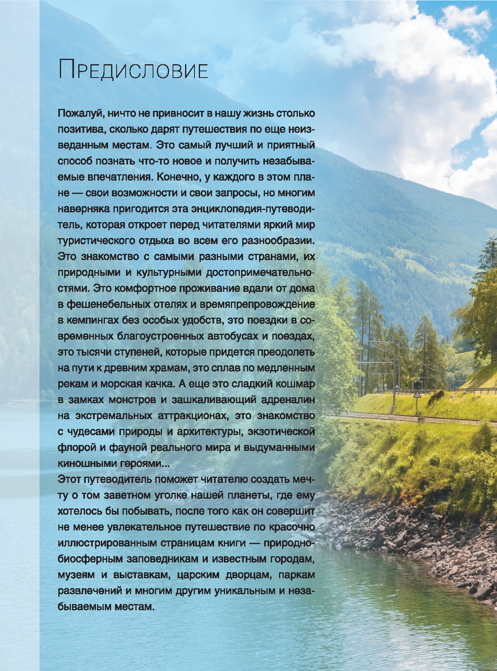 Чтобы выбрать место для предстоящего путешествия, познакомиться поближе со страной, которую вы мечтаете посетить, и узнать больше о ее достопримечательностях, совершенно не обязательно отправляться в турагенство, приобретать рекламные проспекты или пускаться в долгие поиски на просторах интернета. Достаточно открыть эту энциклопедию-путеводитель с 1000 эксклюзивных фотографий – и перед вашими глазами предстанут десятки интереснейших мест в самых разных странах мира.