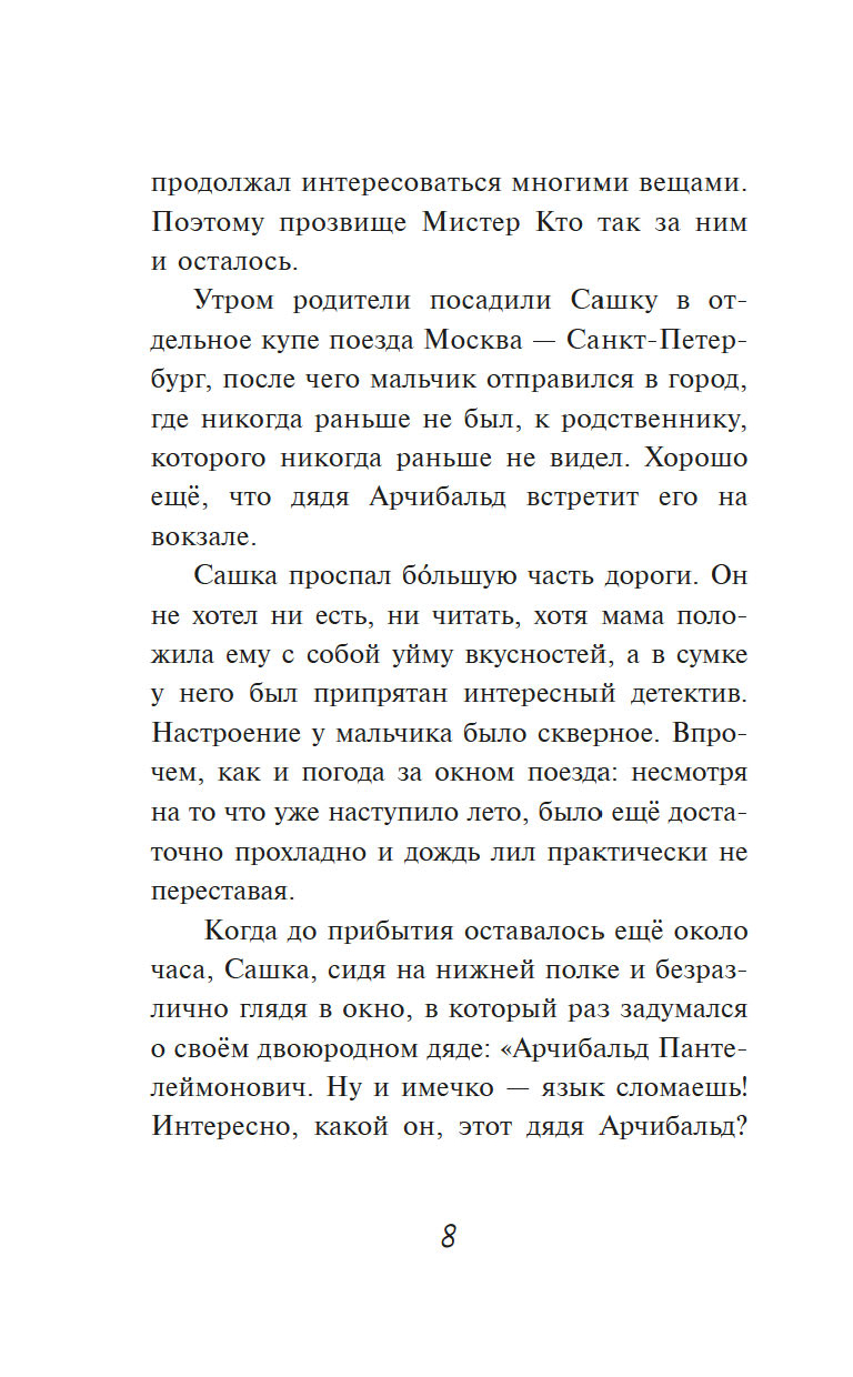 Родители на целый месяц отправили Сашку к дяде в Санкт-Петербург. Для мальчика было сюрпризом, что Арчибальд Пантелеймонович – самый настоящий сыщик! И сейчас он работает над очень запутанным делом: из галереи "Жжёный апельсин" украли мальтийскую болонку с ужасно дорогим ожерельем на шее!