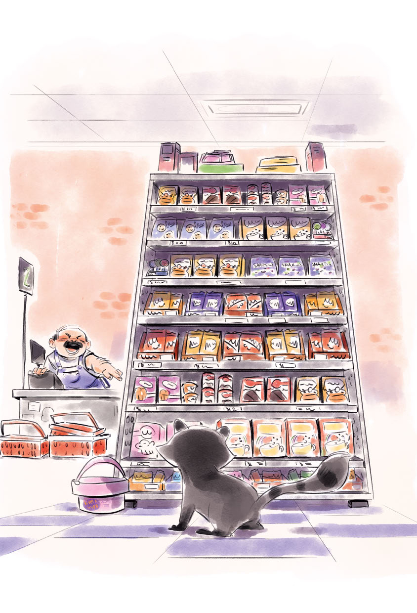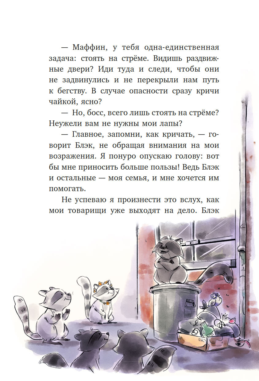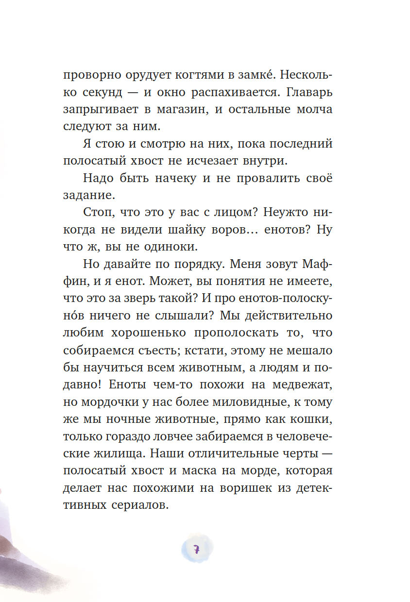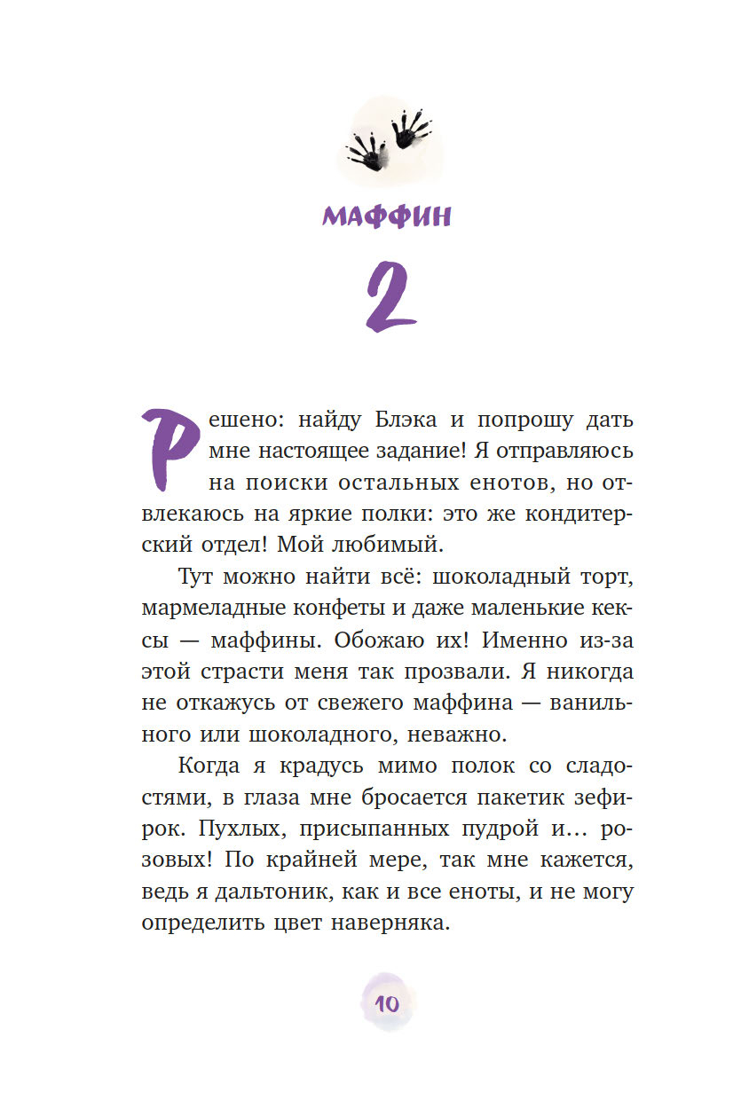 У Маффина пушистый полосатый хвост, он обожает сладости и состоит в банде енотов-воришек.
