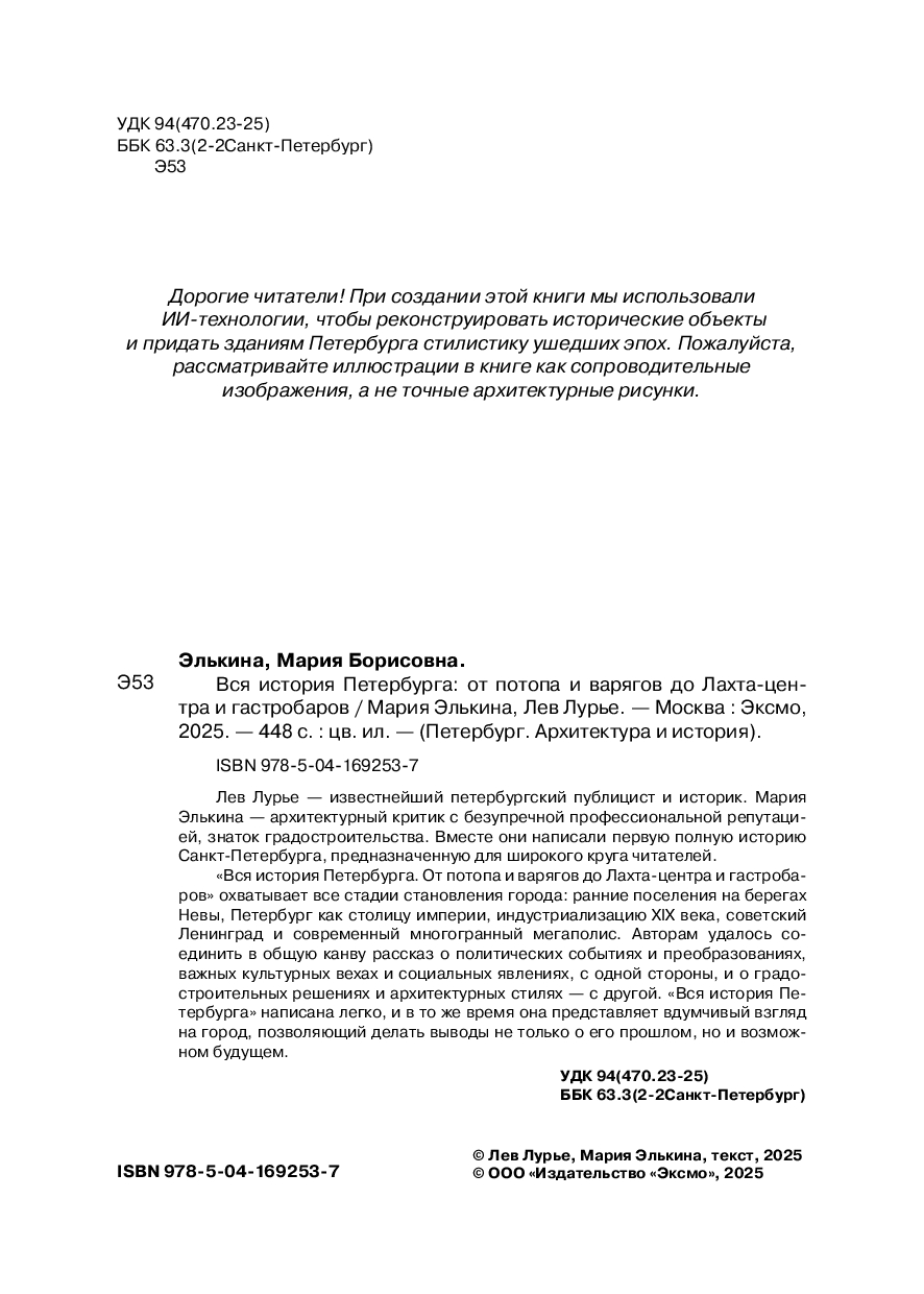 Лев Лурье – известнейший петербургский публицист и историк. Мария Элькина – архитектурный критик с безупречной профессиональной репутацией, знаток градостроительства. Вместе они написали первую полную историю Санкт-Петербурга, предназначенную для широкого круга читателей.
