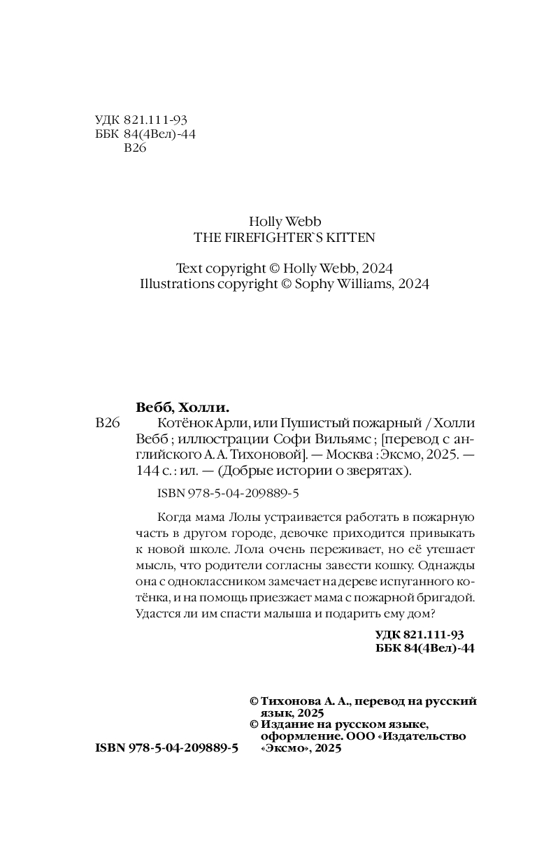| Название в оригинале | The Firefighter’s Kitten By Holly Webb Animal Series 57 |