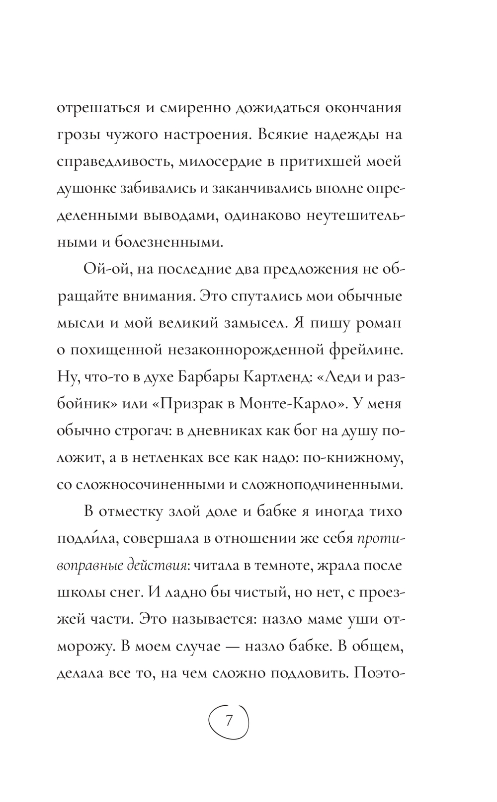 Маленький башкирский городок, конец 90-х. Леся по прозвищу Татарка учится в пищевом, сочиняет роман про фрейлину и дворцовые интриги и зачитывается Бальзаком.