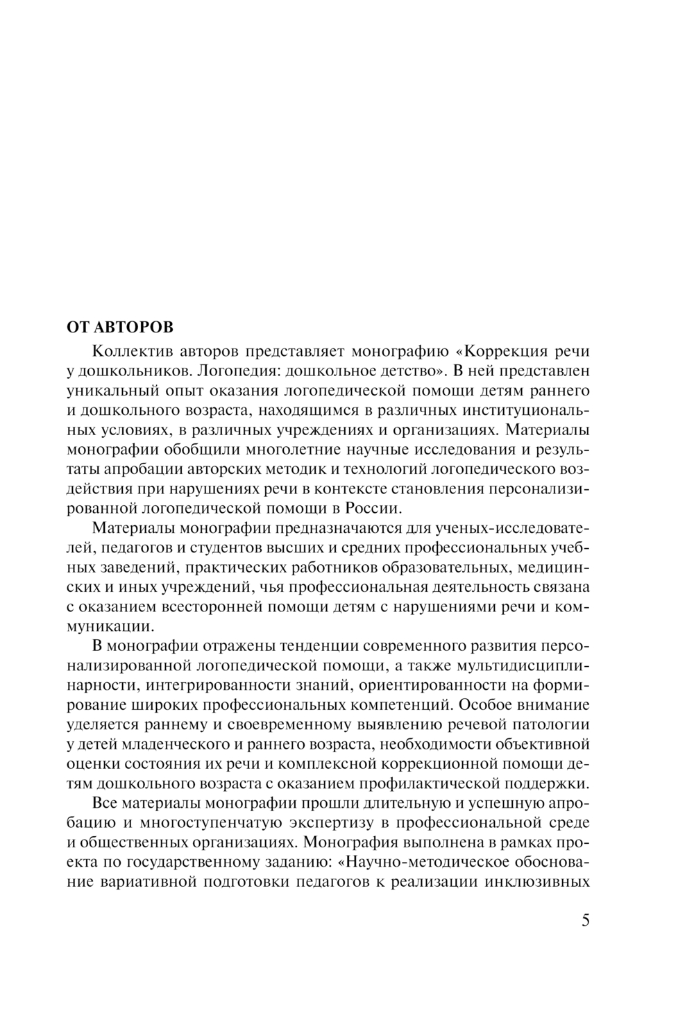 Коллективная монография представляет результаты многолетней работы авторов, являющихся лидерами в области российской дефектологии. Материалы книги предназначены широкой аудитории ученых и практиков, занимающихся проблемами нарушений речи и коммуникации у детей младенческого, раннего и дошкольного возраста. Монография будет востребована среди родительского сообщества и интересна современному студенчеству.