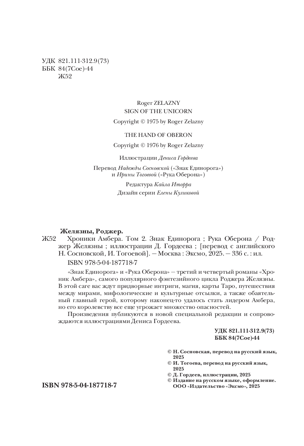 | Название в оригинале | OMNIBUS: Sign of the Unicorn + The Hand of Oberon |