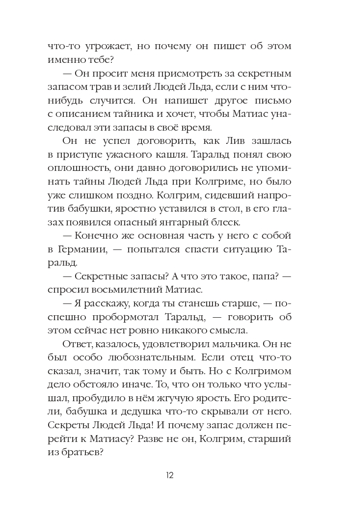 В шестом томе саги о Людях Льда новые беды подстерегают потомков Тенгеля Доброго и Силье. Колгрим замышляет недоброе, Ирья и Таральд переживают за Маттиаса, а у Габриэлы – дочери Сесилии – решается судьба...