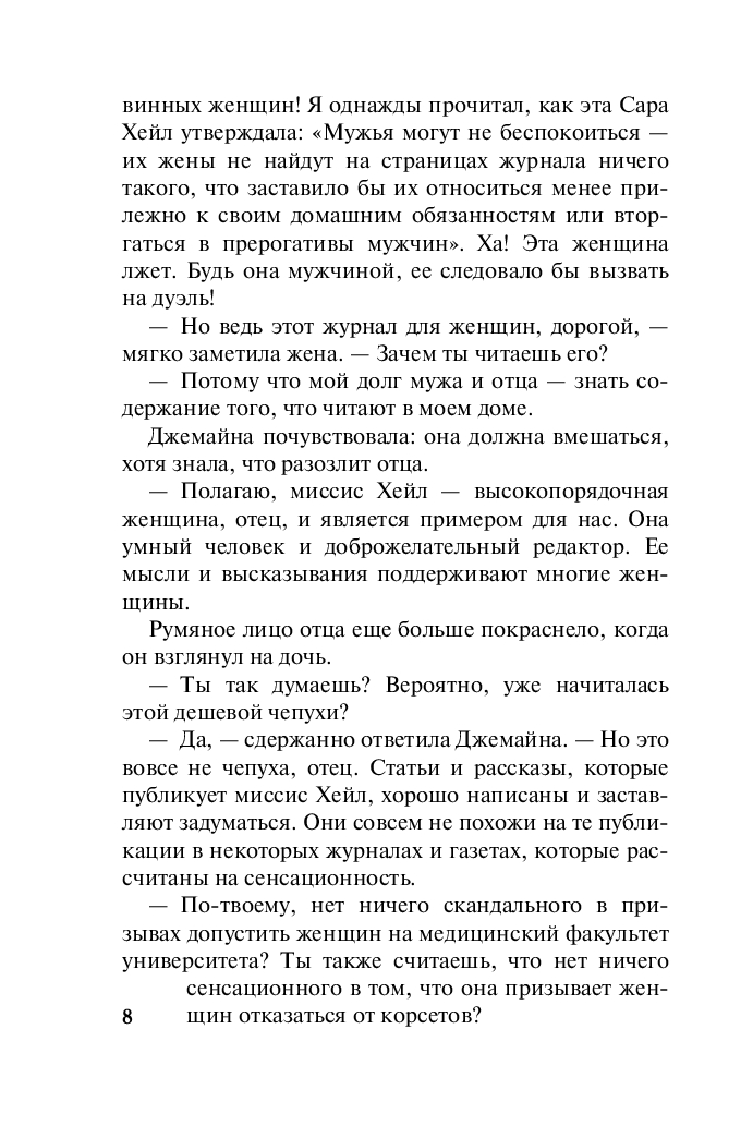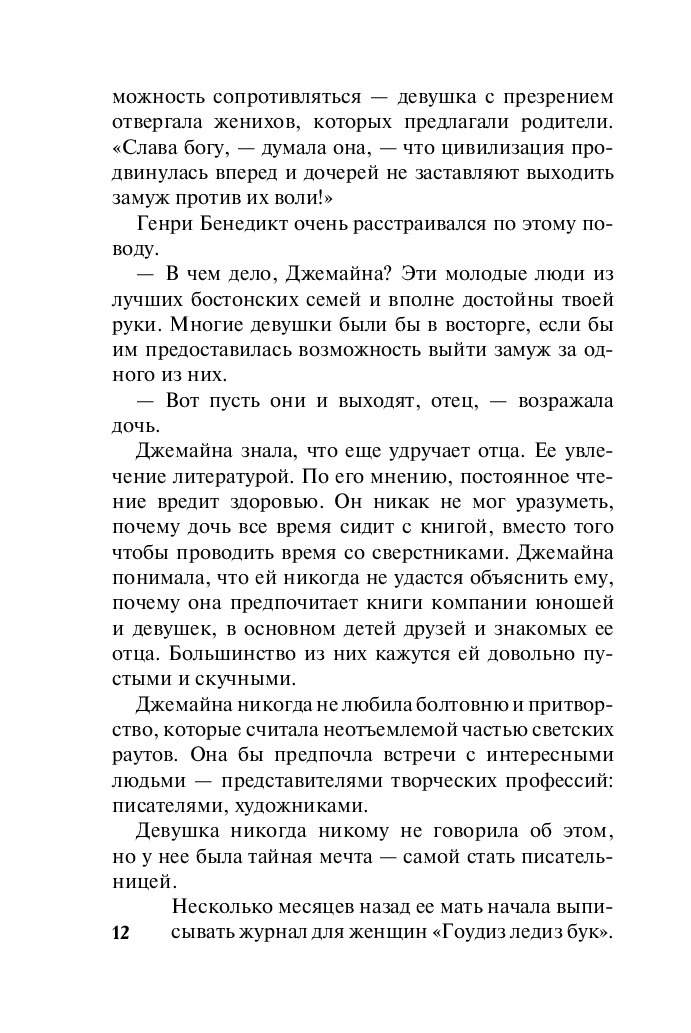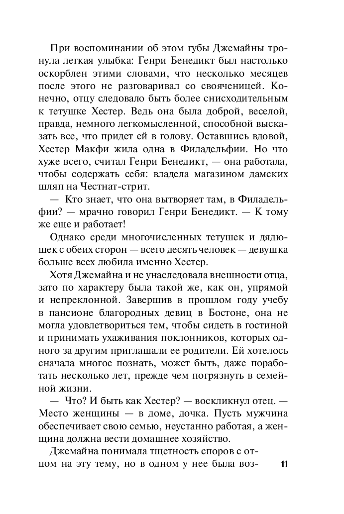У Джемайны Бенедикт хватало блестящих поклонников, однако гордая и независимая девушка, превыше всего ставившая свободу, предпочла делать карьеру в популярном журнале для дам в Филадельфии. Там-то и встретилась она с коллегой-журналистом Оуэном Тэзди...