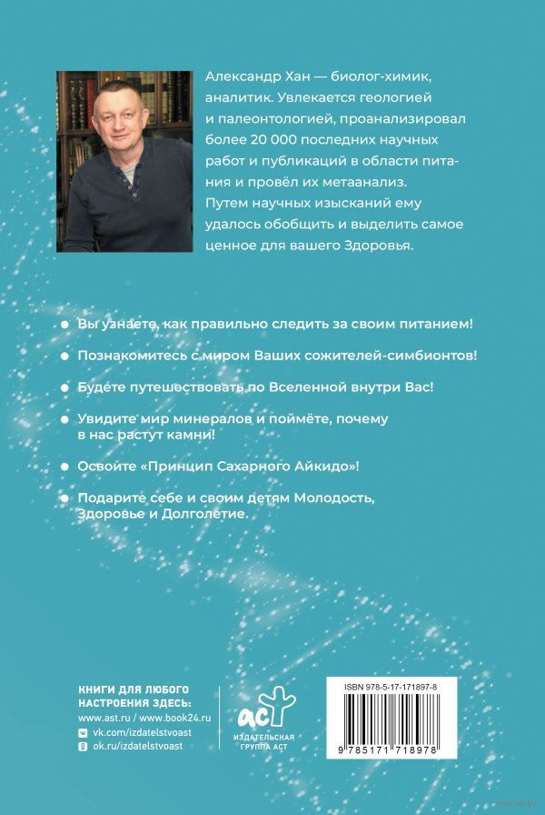Александр Хан – биолог-химик, аналитик. Увлекается геологией и палеонтологией, проанализировал более 20 000 последних научных работ и публикаций в области питания и провёл их метаанализ. Путем научных изысканий ему удалось обобщить и выделить самое ценное для вашего Здоровья.
