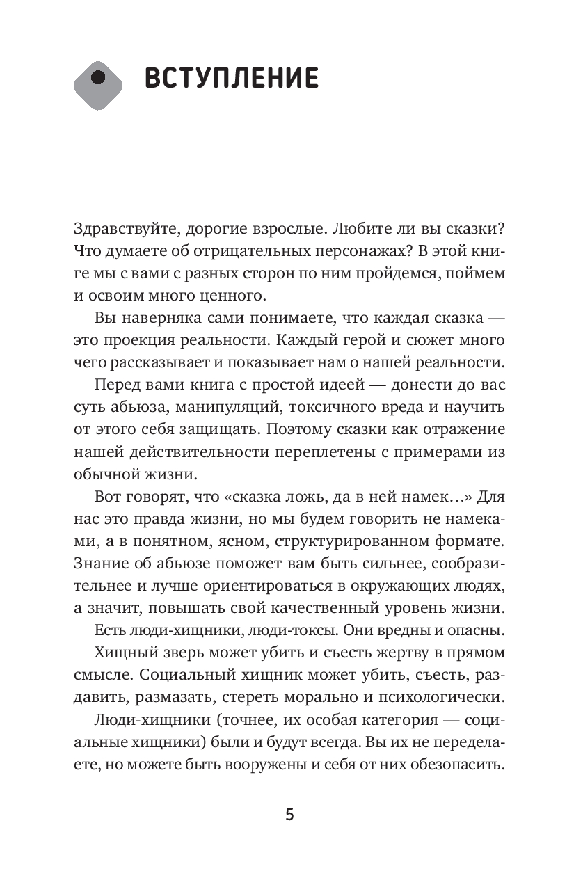 Эта книга – щит и меч от любого токсичного влияния абьюзеров, нарциссов и тиранов. На примере сказочных архетипов вы познакомитесь с пятью самыми беспощадными манипуляторами, которые подстерегают в разных сферах жизни: семья, работа, любовь, дружба.