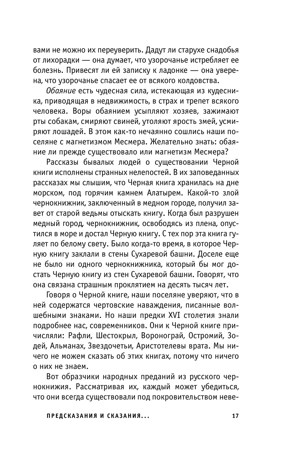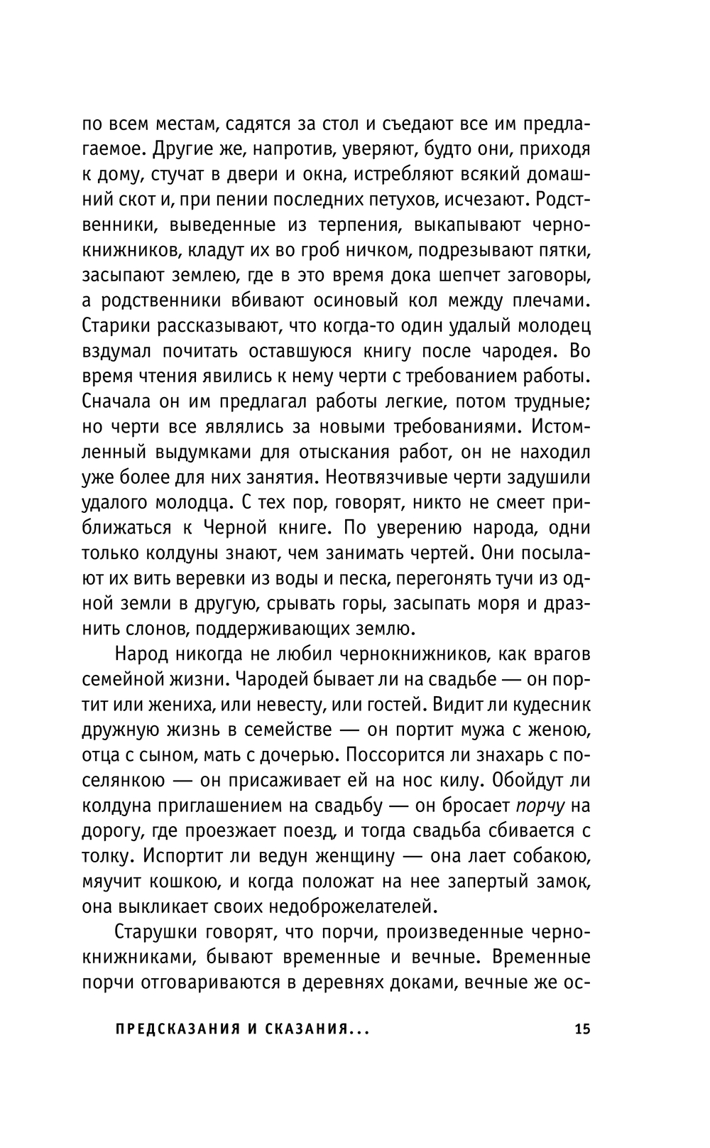 В сборник вошли произведения "Русское народное чернокнижие" известного собирателя и исследователя русского фольклора Ивана Петровича Сахарова, труд Владимира Ивановича Даля, автора толкового словаря русского языка, "О повериях, суевериях и предрассудках русского народа", былички, бывальщины и сказки о мифологических персонажах, записанные исследователями народной культуры и быта второй половины XIX – начала XX века.