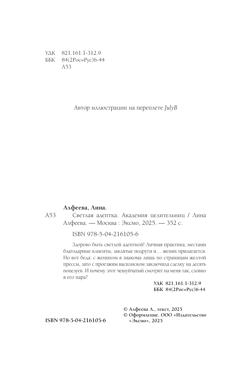 | Изготовитель | ООО «Издательство «Эксмо». РФ, г. Москва, ул. Клары Цеткин, 18, корп. 5 |
